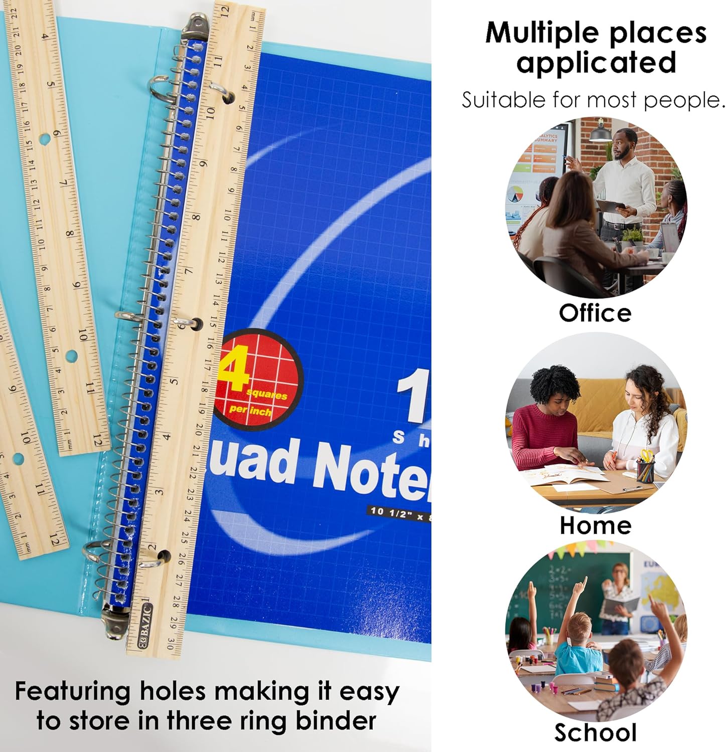 - ā DOUBLE-SIDED MEASUREMENT. Let measuring be the least of your worries with our 12inch/30cm natural wood ruler containing a single metal edge and featuring holes making it easy to store in three-ring binder!