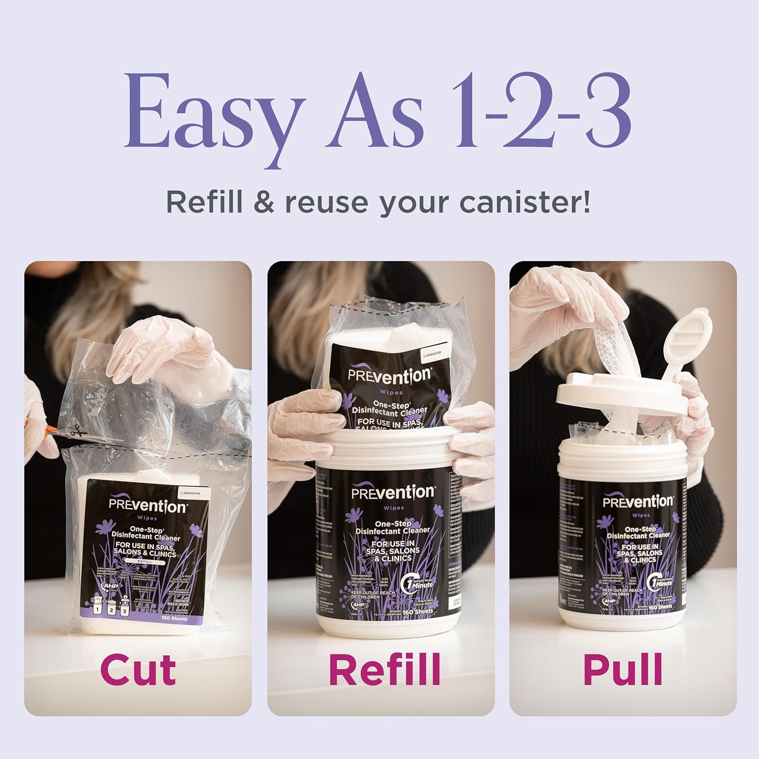 - Disinfectant Wipes Bulk – Convenient and eco-friendly, Prevention Disinfectant Refill Wipes reduce plastic waste by 90%, when compared to regular canisters. Simply reuse your existing canister and refill with the disinfectant wipes you trust. The compact size of refill wipes takes up less room in your spa or salon making them also cost effective.