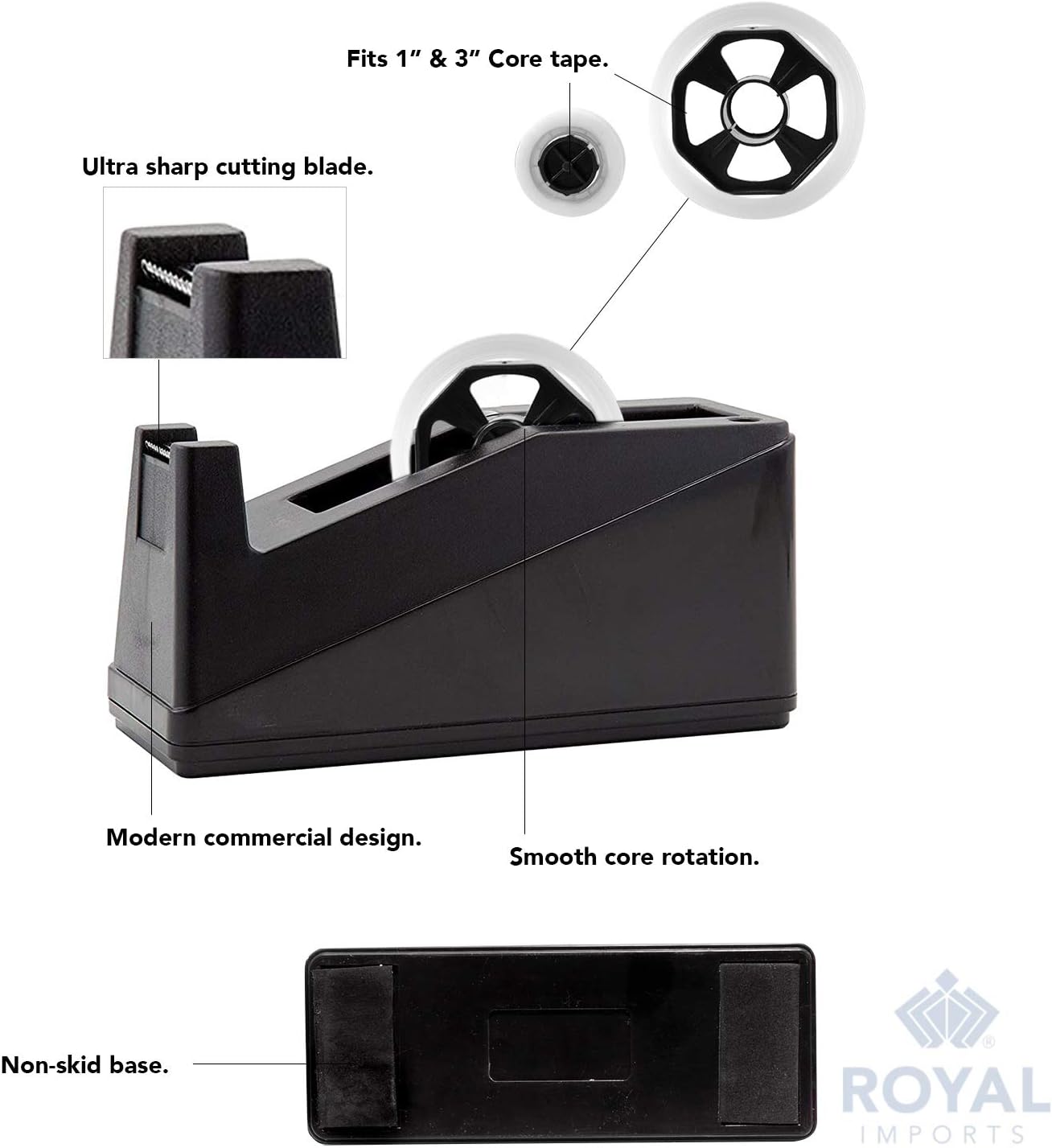 - ECONOMICAL & RELIABLE: Classic Black Desktop Tape Dispensers by Royal Imports is an economical and reliable item. You will be happy to have this item at your home or office. Consider yourself lucky to get such a reliable piece at an affordable cost. ::: ROLL TAPE NOT INCLUDED.