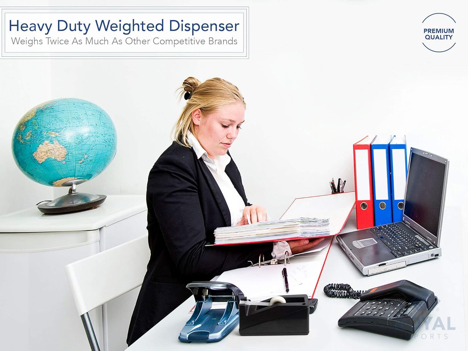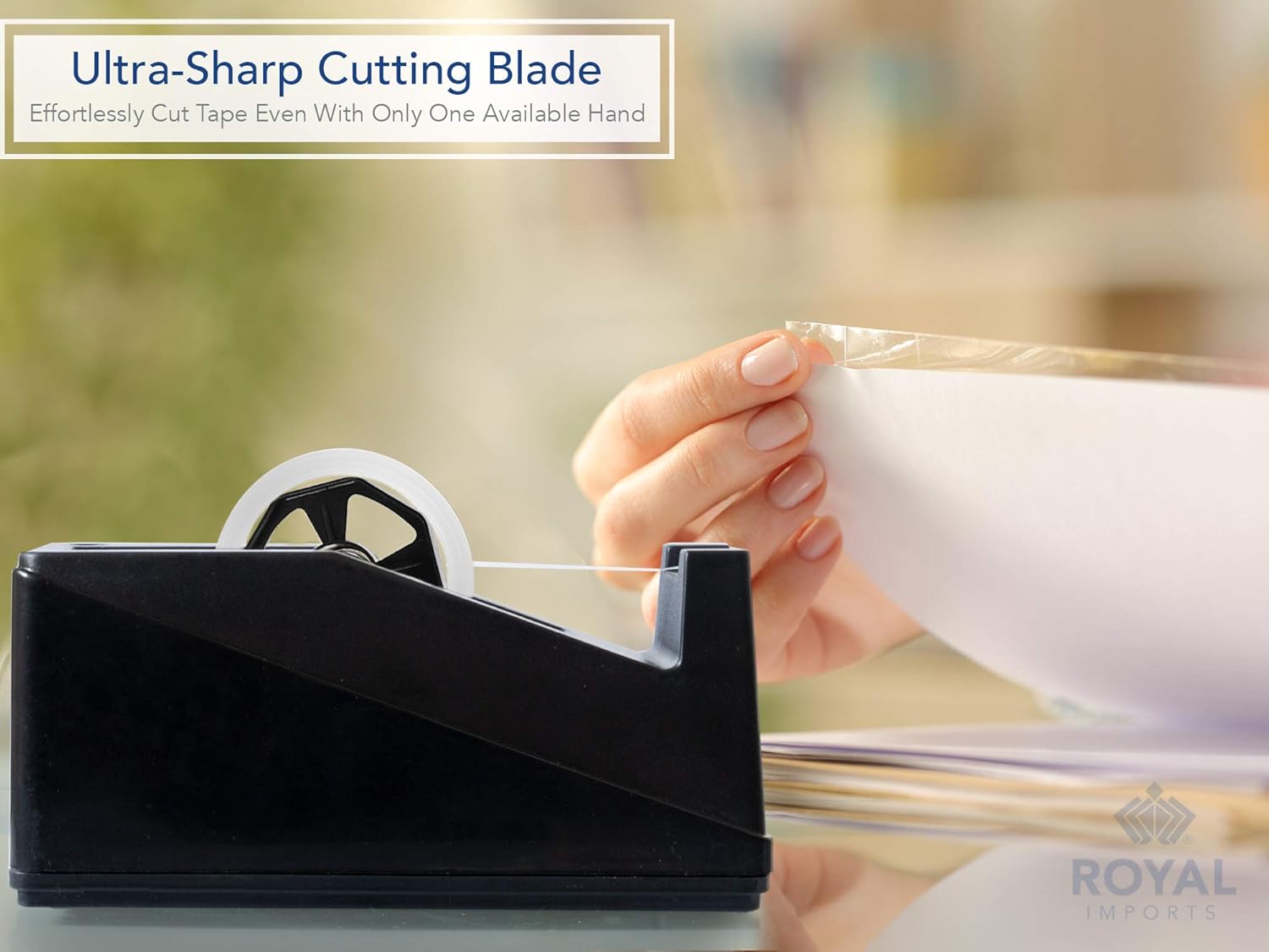 - ROYAL IMPORTS DESKTOP TAPE DISPENSER: An ultimate item for multi-purpose uses. Royal Imports desktop tape dispenser is a handy item that can be placed anywhere. It can be used for sealing envelopes attaching pieces or decorating your desk by conveniently taping variety of decorative items. ****Suitable tape width: Up to 1-Inch****