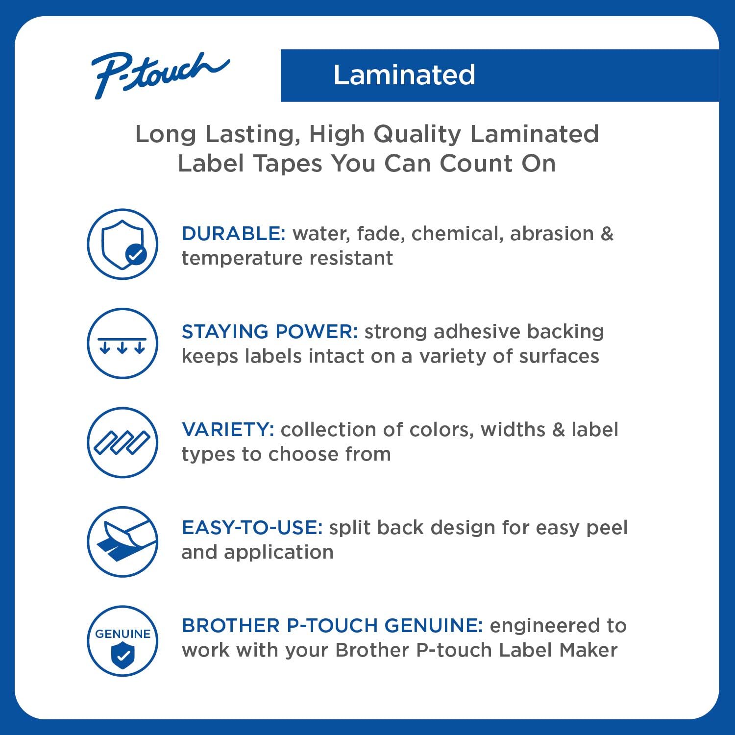 - LABELS MADE EASY: Use your compatible P-touch labeler to easily create beautiful labels that adhere to most surfaces and are resistant to water and UV exposure.