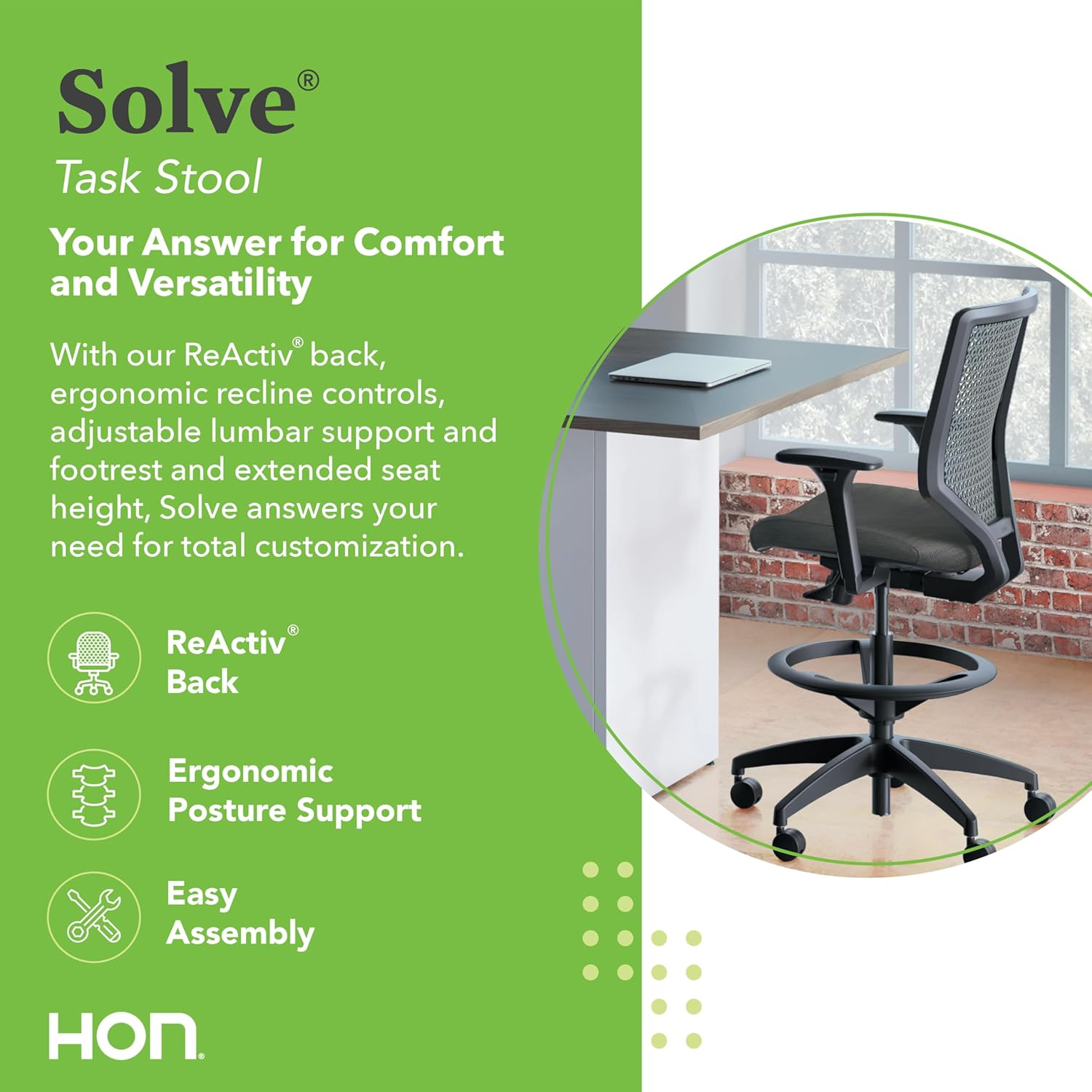 HON Solve Standing Desk Chair, ReActiv High Back Support, Office Chair with Foot Rest, Ergonomic Office Chairs, Adjustable Height