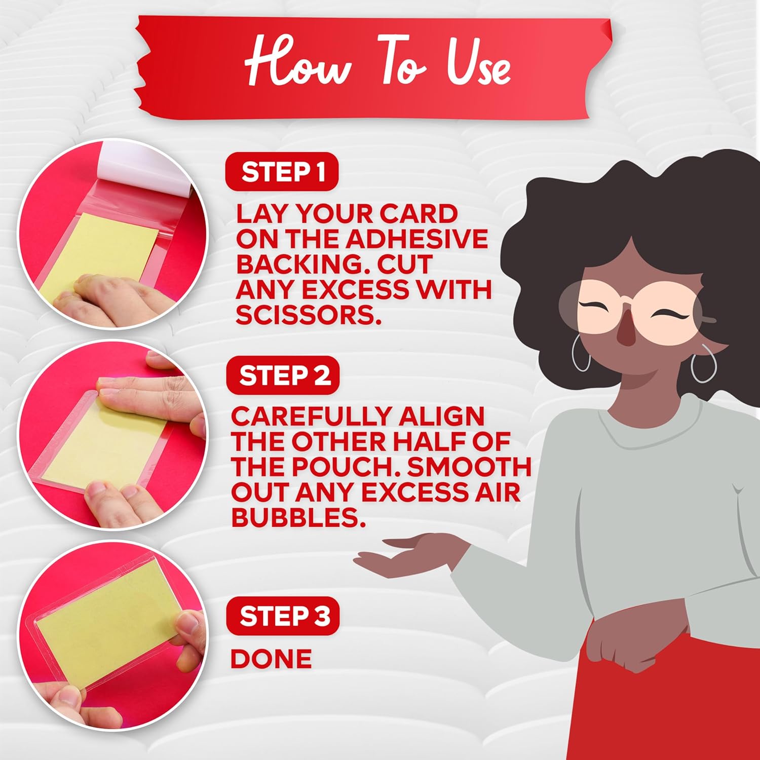 - These self laminating pouches provide airtight sealing without the need for a laminating machine, EMPOWERING THE AVERAGE AMERICAN user to have sleek and professional business cards, ready for distribution, handing out and viewing.