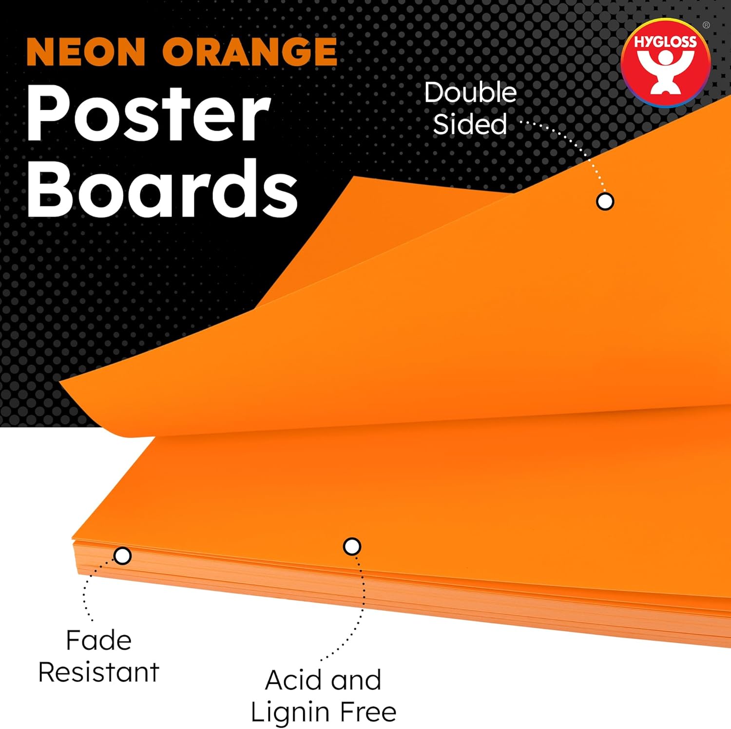 Hygloss Large Poster Board 22x28 - 25 Neon Orange Single Color Poster Boards Bulk Pack - 10 Pt. Thickness Colored Poster Board Paper for Projects, Signs, Displays - Posterboard Multipack 22" x 28"