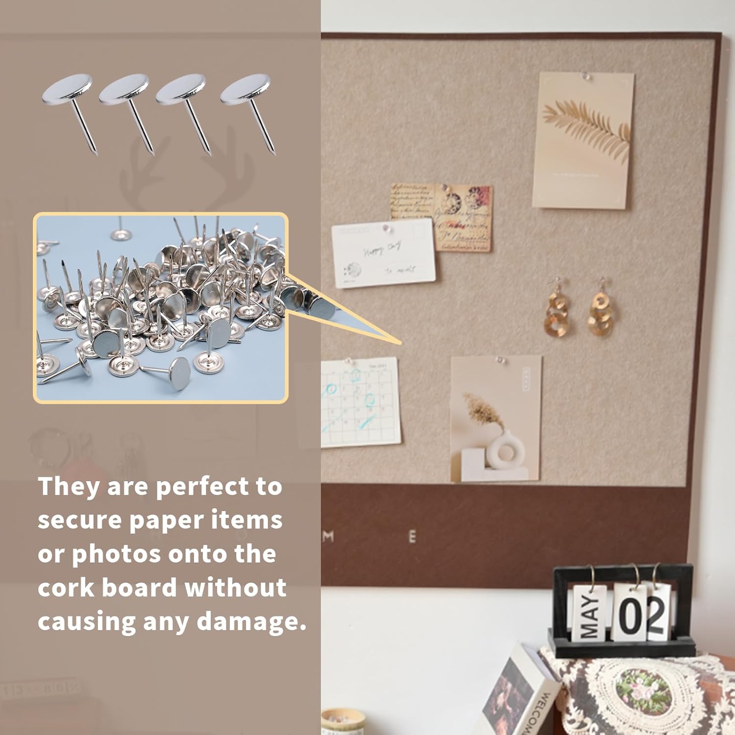 - QUALITY SERVICE: The upholstery tack is ideal for attaching paper items or photos to the cork board. If you have any questions about flat head thumb tacks, please feel free to contact us and we will try our best to help you