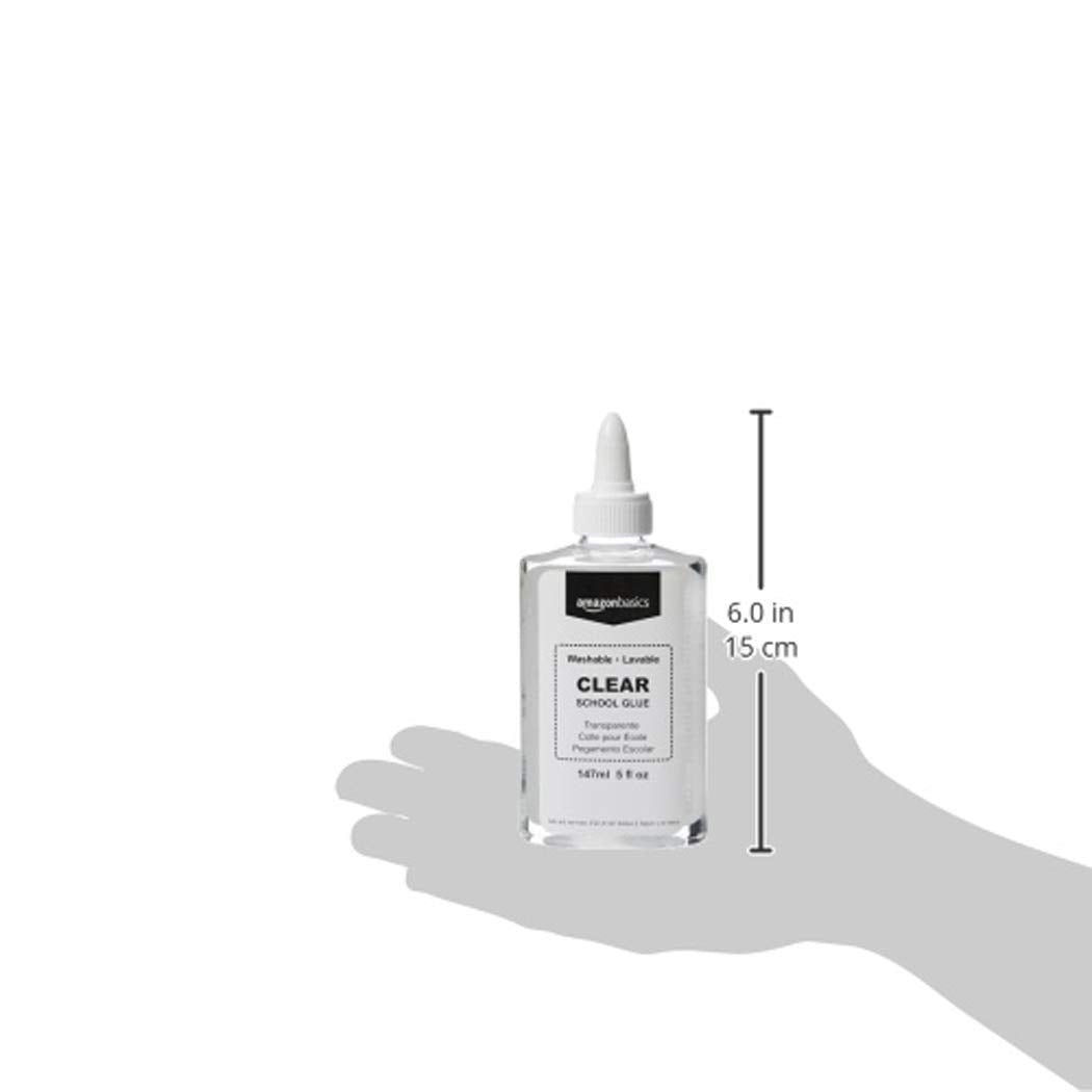 Amazon Basics Washable Liquid School Glue, 5 oz Bottle, 147ml, 6-Pack, Clear