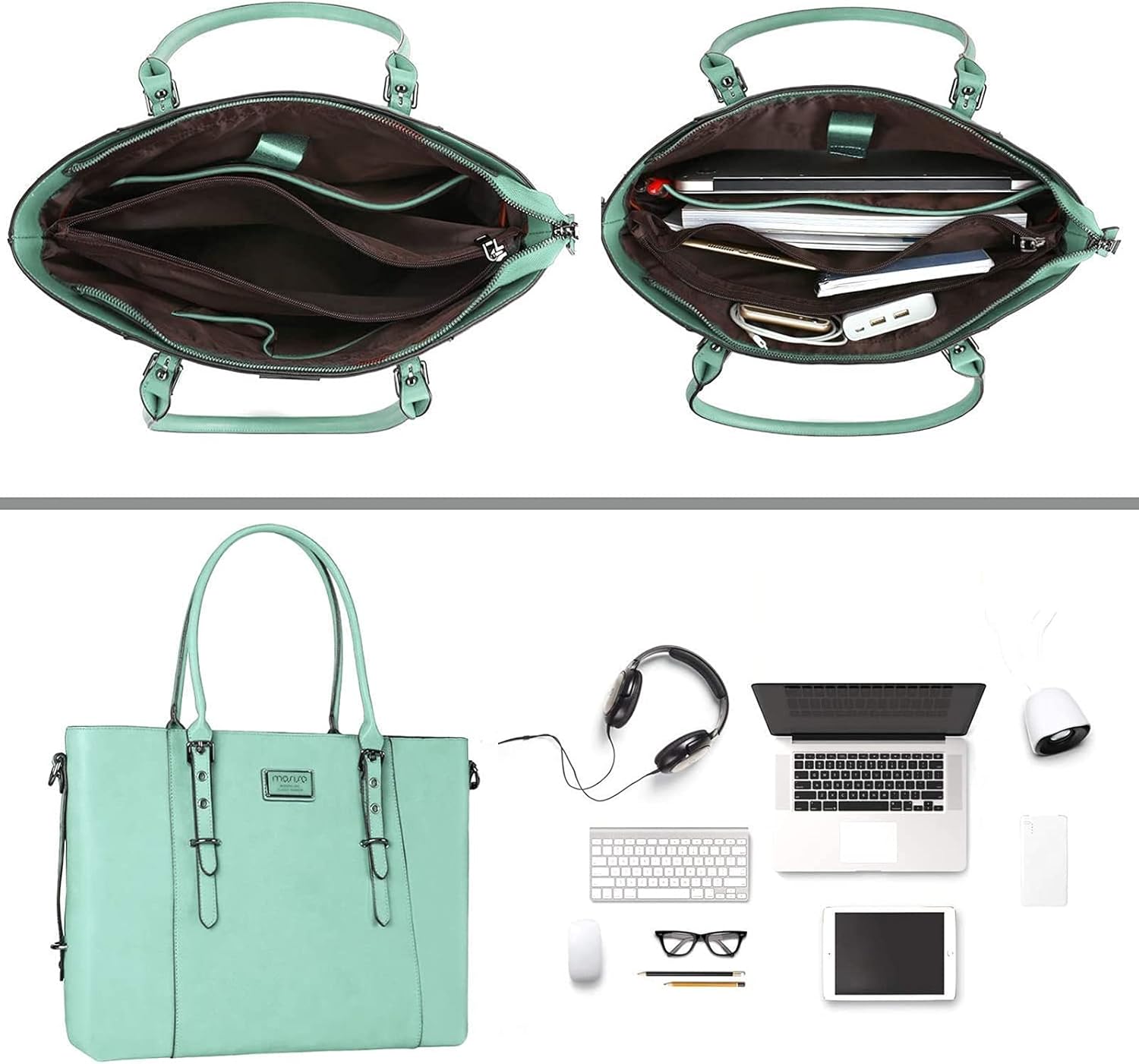 MOSISO PU Leather Laptop Tote Bag for Women, Waterproof Large Capacity Business Work Briefcase Shoulder Laptop Bag