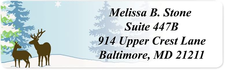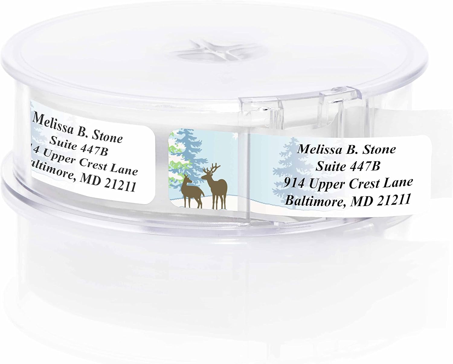 Festive Deer Designer Rolled Address Labels with Elegant Plastic Dispenser