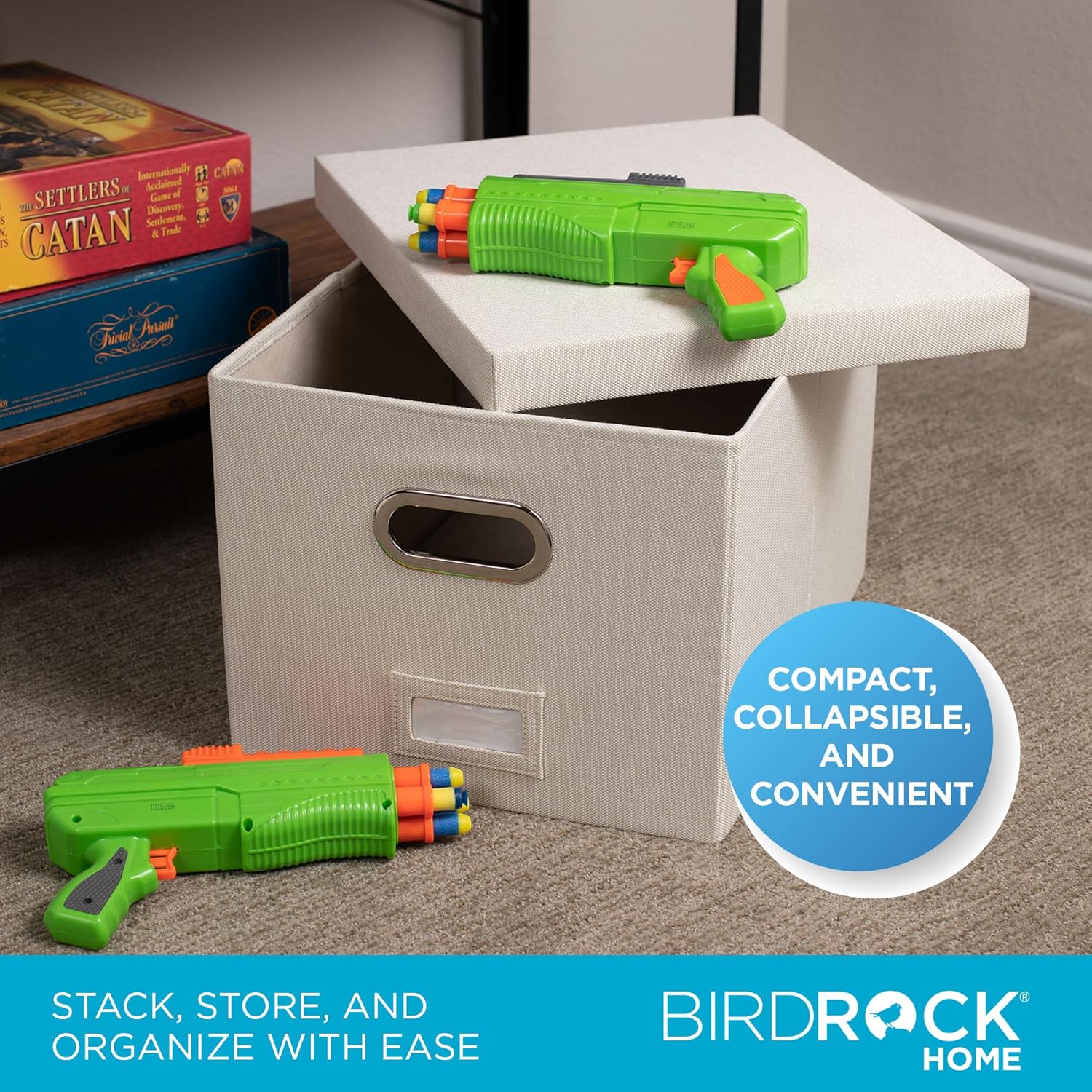 Internet's Best Collapsible File Storage Organizer Box with Lid - Decorative Linen Hanging Filing & Storage Office Box - Letter/Legal - Strong Durable - Toys Blankets Binders - Cream - 1 Pack