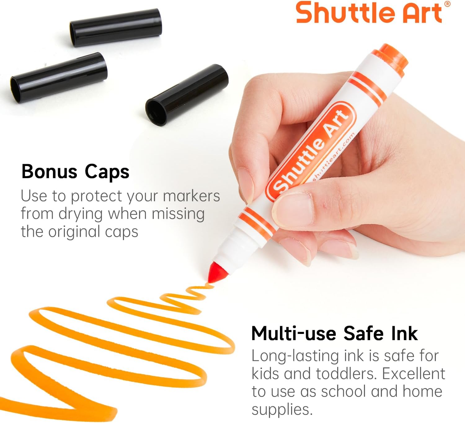 Shuttle Art 304 Pack Washable Markers, 16 Assorted Colors Broad Line Conical Tip Large Markers Bulk with a Box, Bonus Caps, Home Classroom School Supplies for Toddlers Kids Adults Students Teachers