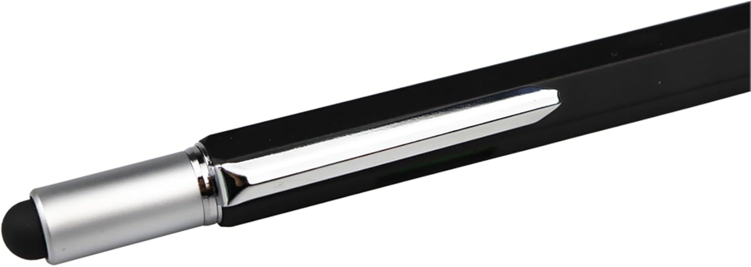 DUNBONG Metal Multi tool Pen 6-in-1 Stylus Pen - With Screwdriver, Ballpoint Pen Black ink, Stylus pen, Level and Ruler, 1-Count (Black)