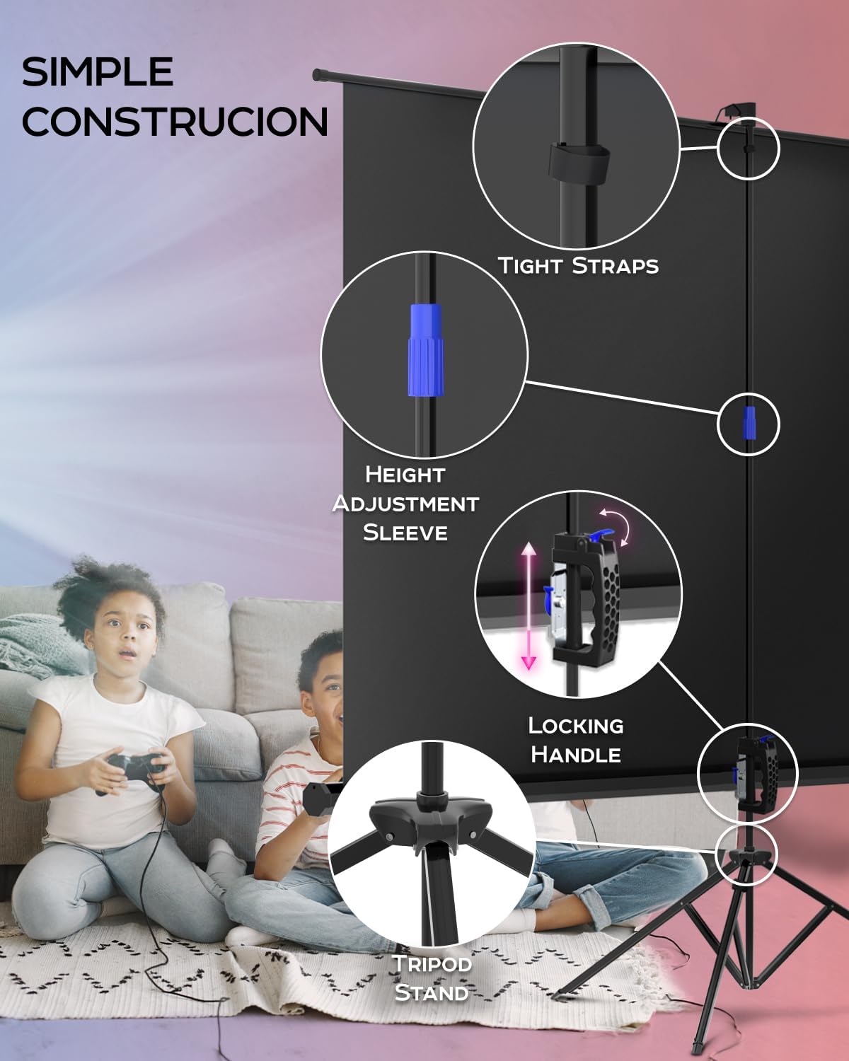 - Lightweight projector screen is assembled by stable tripod support stand with wide legs which brings the reliability and safety for your comfort experience.