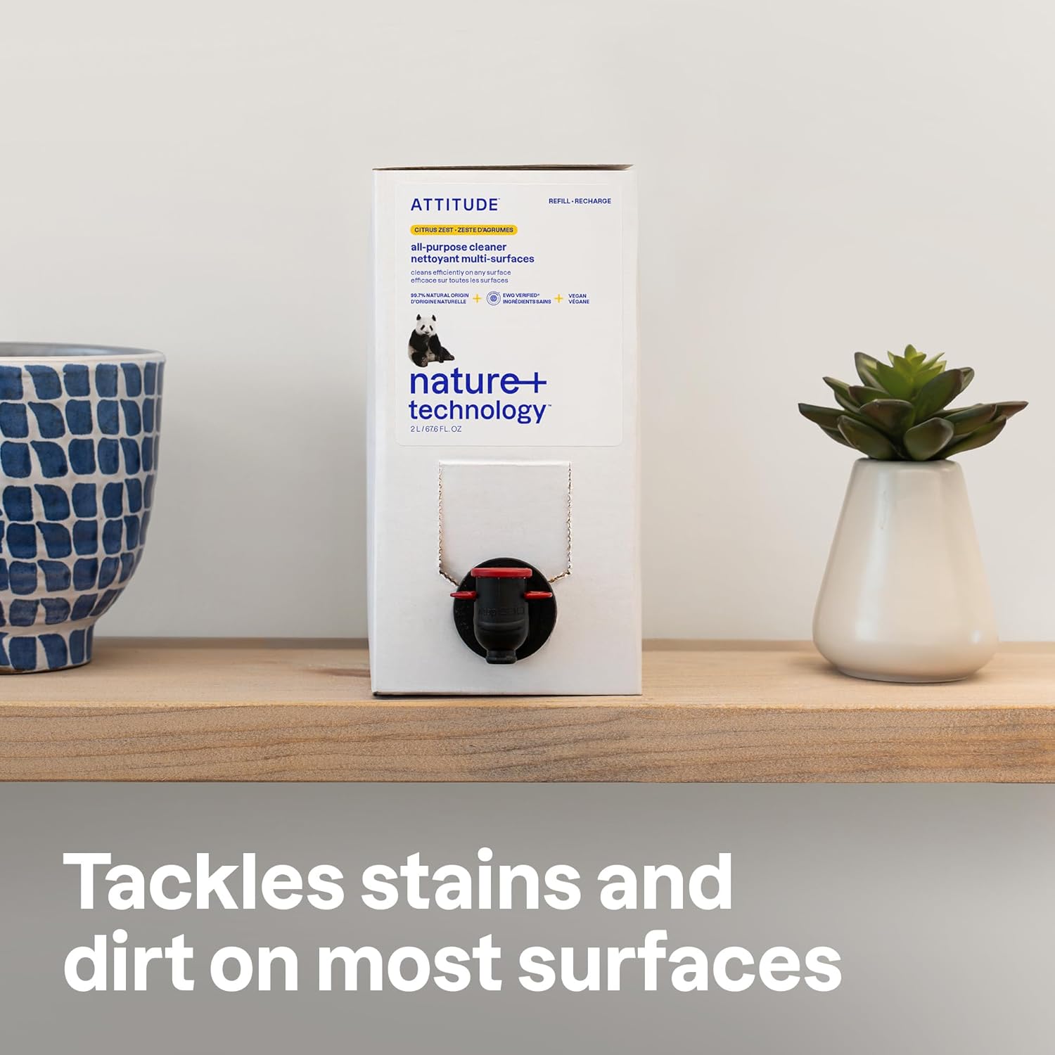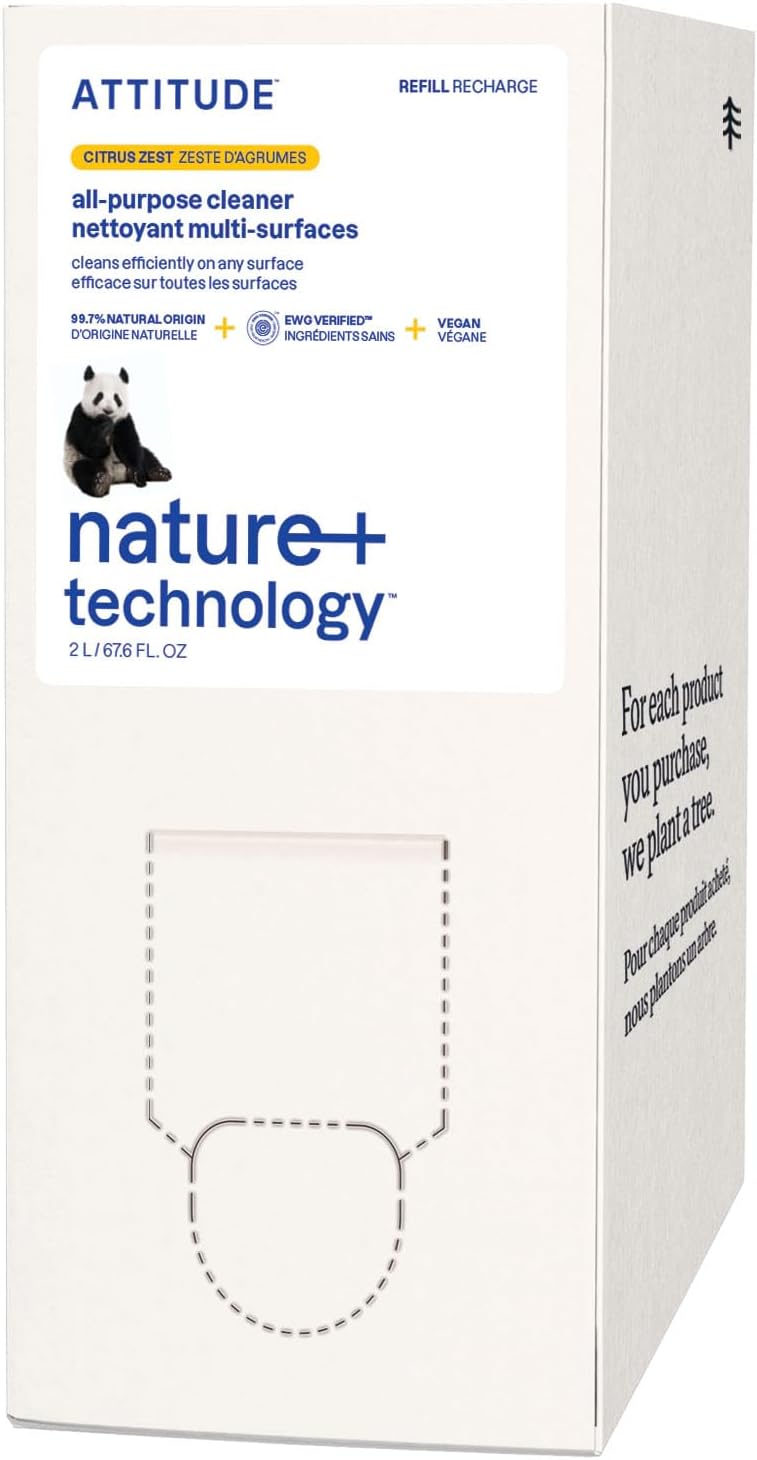 ATTITUDE All-Purpose Cleaner Refill, EWG Verified, Plant-Based & Vegan, Multi-Surface Cleaning Spray, Citrus Zest Scent, 67.6 Fl Oz
