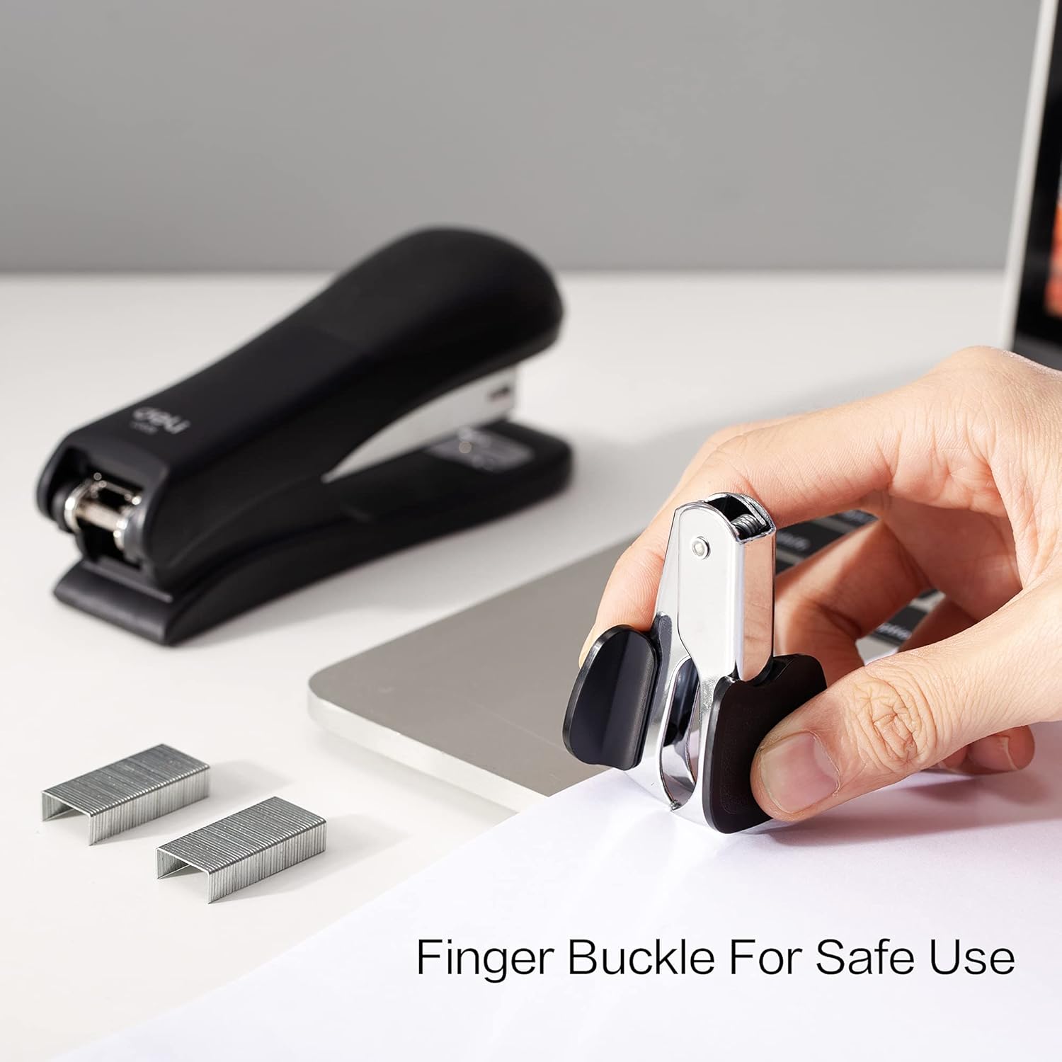 - All-metal construction for long-lasting strength; ergonomic design for comfortable stapling