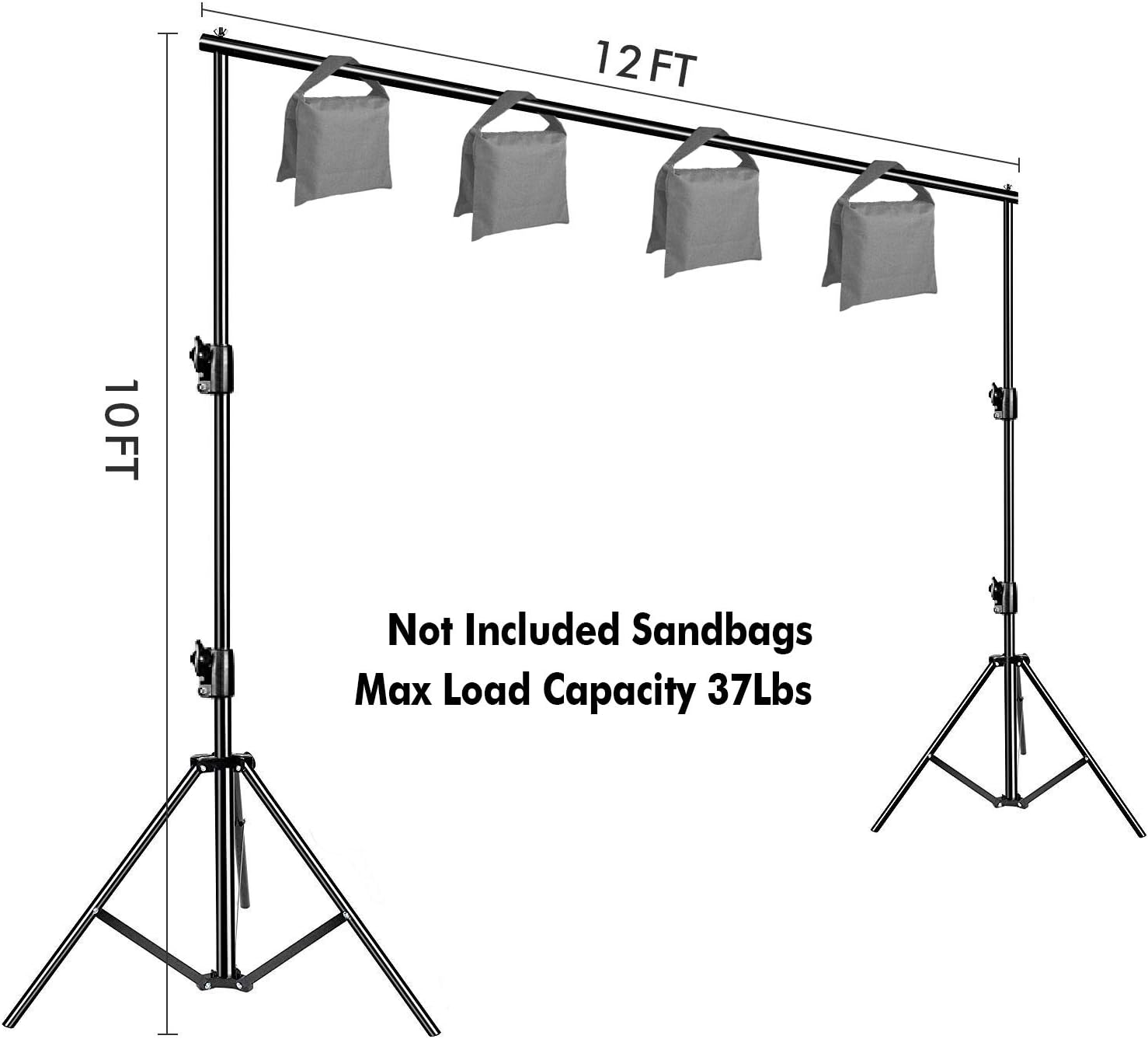 - (4)x Cross Bar With The quick inter-locking connection width adjustable (Min 6ft – Max 12ft) customize the wide of your stand to Holds Canvas, Muslin or Paper Backdrop .No sag when hang backdrops within 37 lbs, safety use for photo/video Studio Shooting