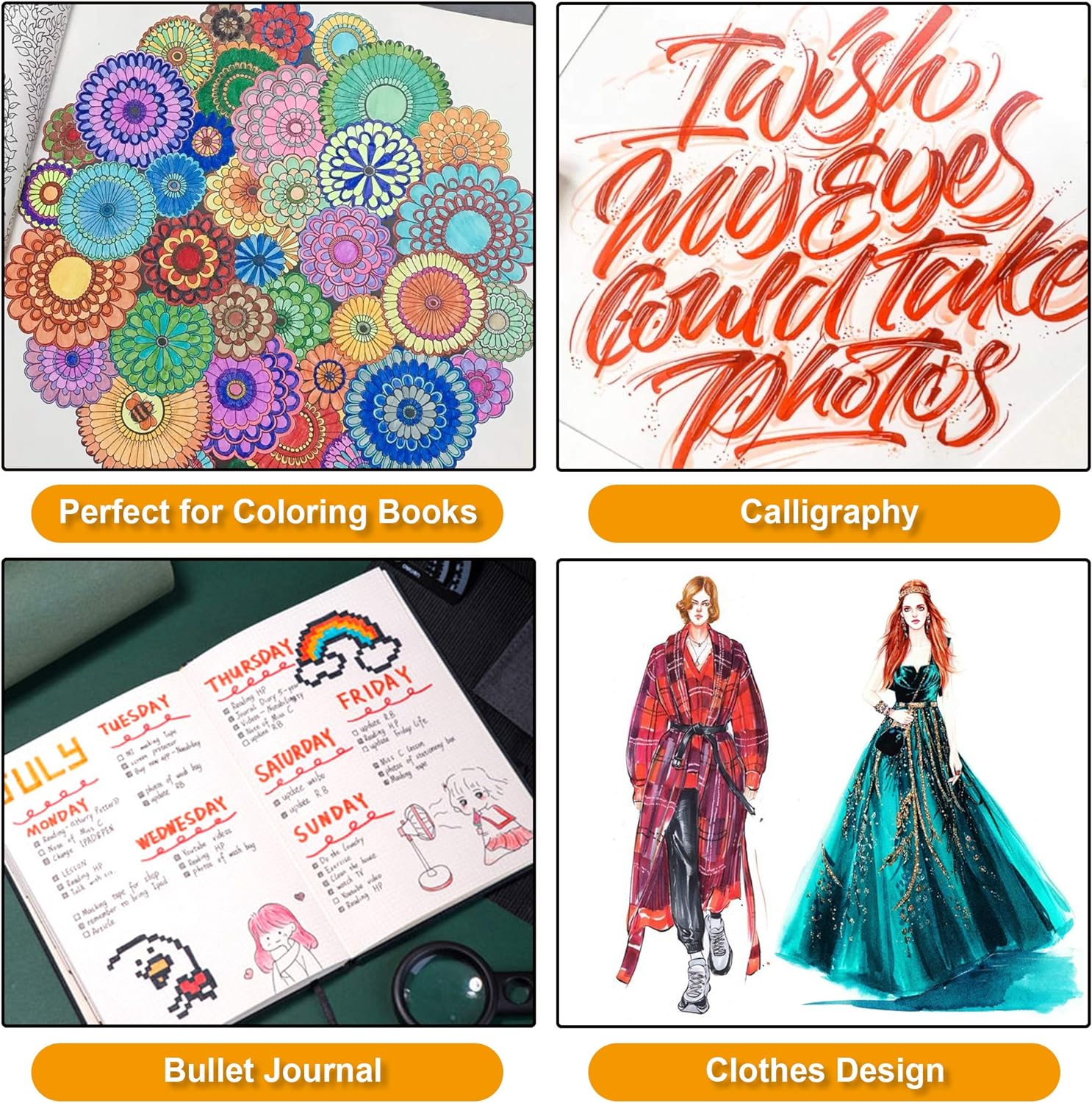 - 120 COLORS & 1 COLORING BOOK: Lelix dual tips brush pen set contains 120 bright colors pens and 1 coloring book! Great for adult kids artists coloring books, calligraphy, journal, drawing, sketching and doodling.