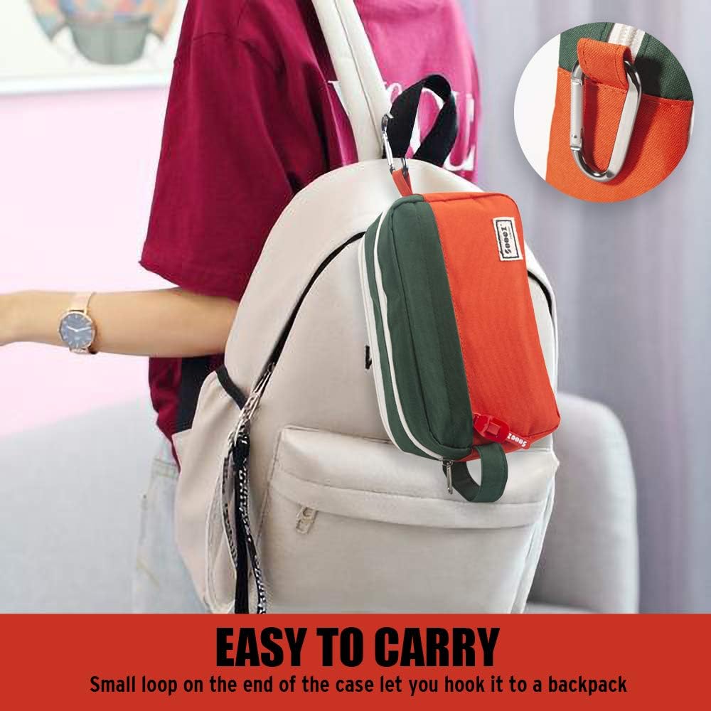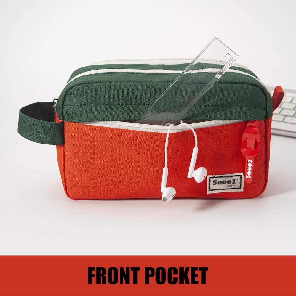 Sooez High Capacity Pencil Case, Big Pencil Bag Pouch Box Organizer Pen Case, Portable Journaling Supplies with Easy Grip Handle & Loop, Aesthetic Supply for Girls Adults, Orange