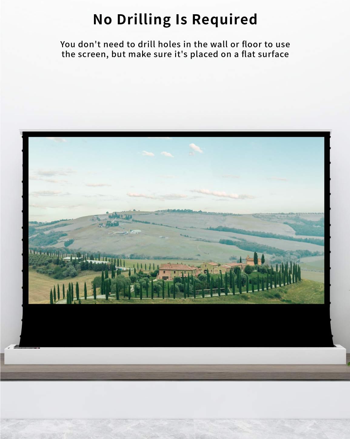 - ▶【Fast easy to Set UP & Space-saving Design】Plug in the power cord to achieve the installation in 1 minute! ; No screws necessary;Change any indoor viewing place with your mood! Electric Pop-up/Floor Rising series projector screen is a collection of premium retractable electric screens that VIVIDSTORM Unique Wire Tension Technology. Flatness like glass surface. and extend upward from the floor. when the screen is not used, just close it which makes it unobtrusive;