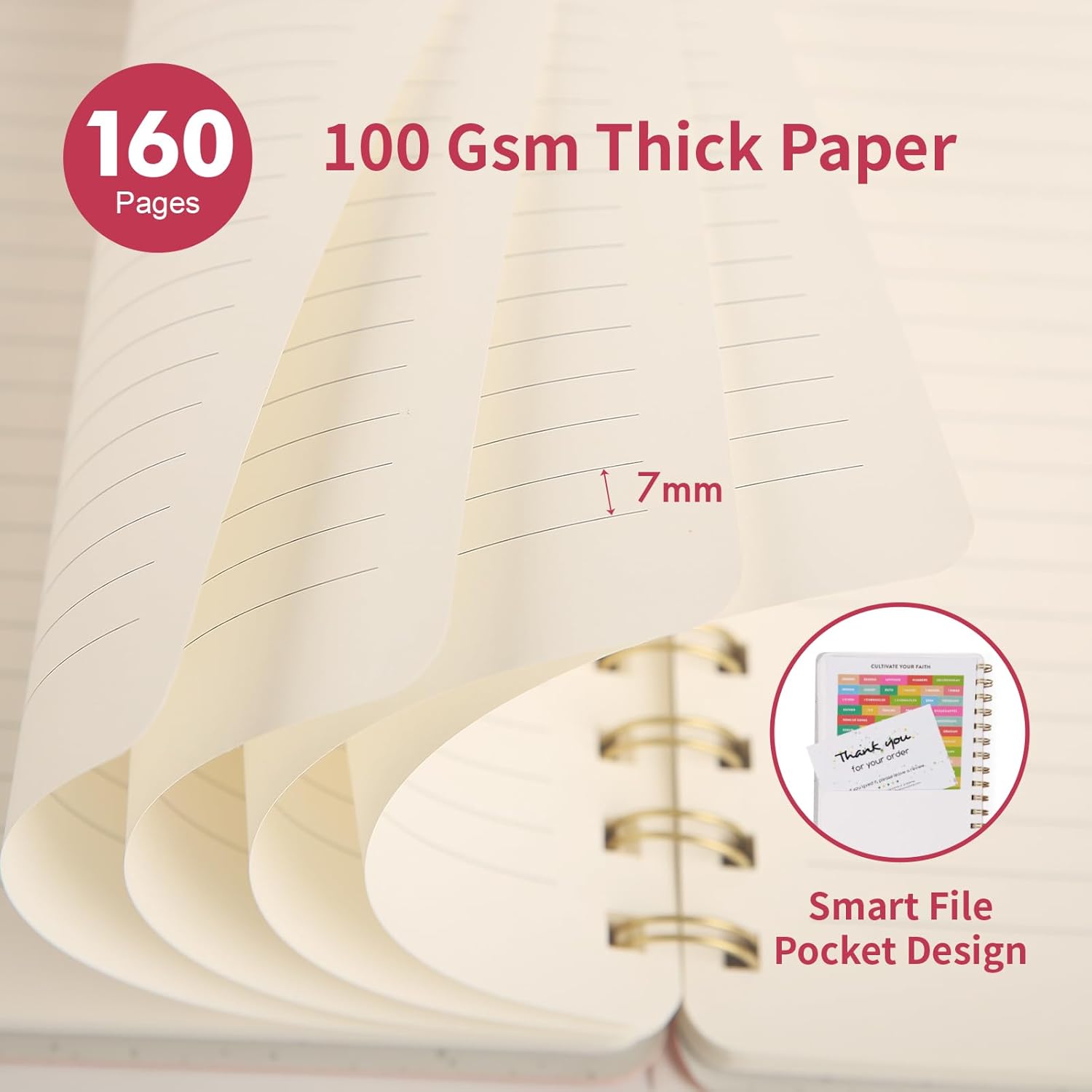 - Premium Paper: Crafted with 100 GSM thick paper, this College Ruled Notebook prevents ink bleed-through and ghosting. The 0.7mm line spacing is perfect for detailed writing. Includes 80 double-sided sheets; 160 ruled pages, this lined notebook offers ample space for all your writing needs, from meeting notes to personal journaling
