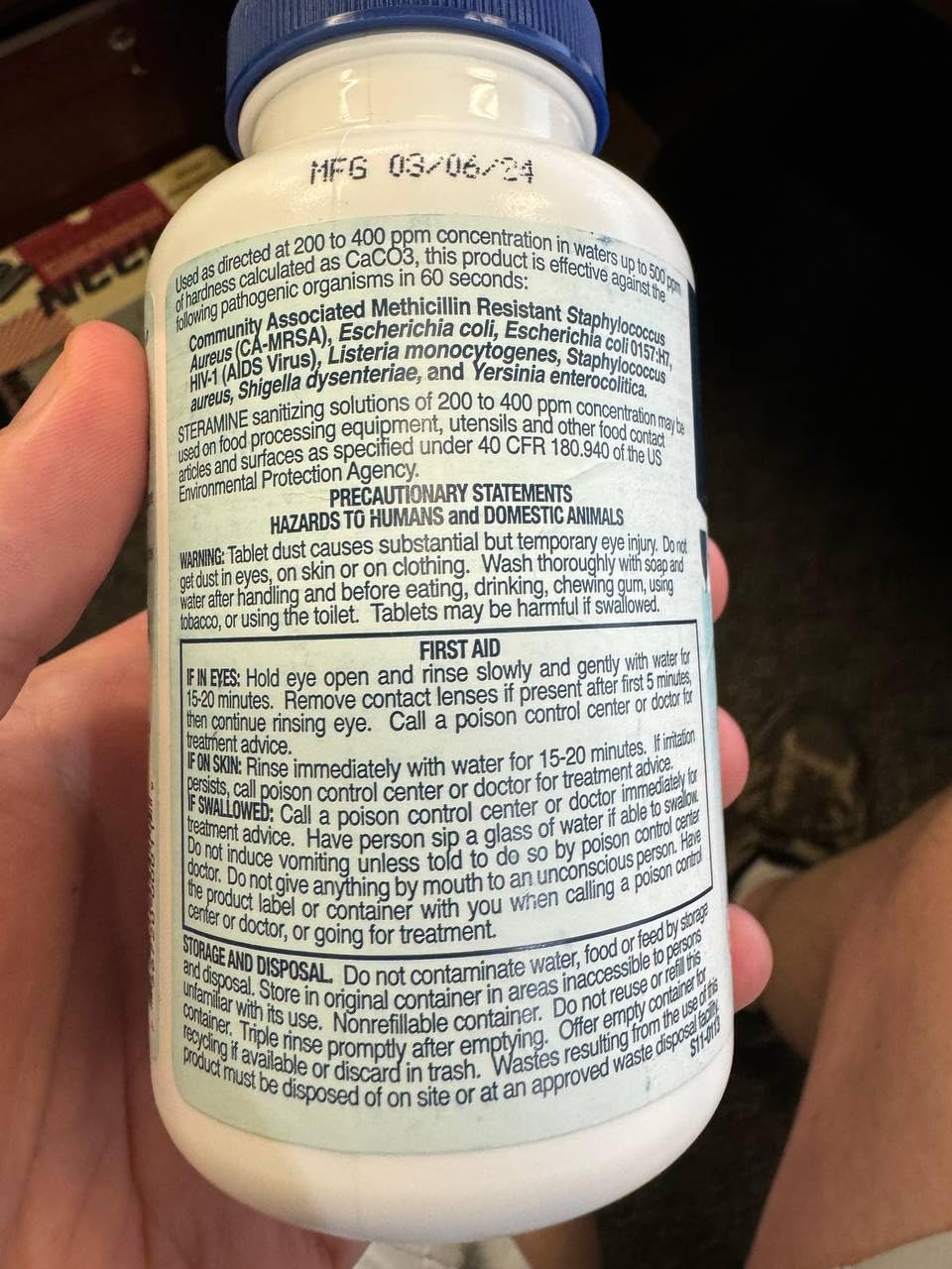 - SANITIZER TABLETS FOR FOOD CONTACT SURFACES – Steramine sanitizing tablets are expertly formulated to disinfect food contact surfaces by eliminating harmful microorganisms such as CA-MRSA, E. coli, HIV-1 (AIDS virus), Listeria monocytogenes, and Staphylococcus aureus. Ideal for use in restaurants, bars, commercial kitchens, catering services, and food prep areas, these tablets provide powerful, reliable sanitation to help maintain a safe and compliant workspace.