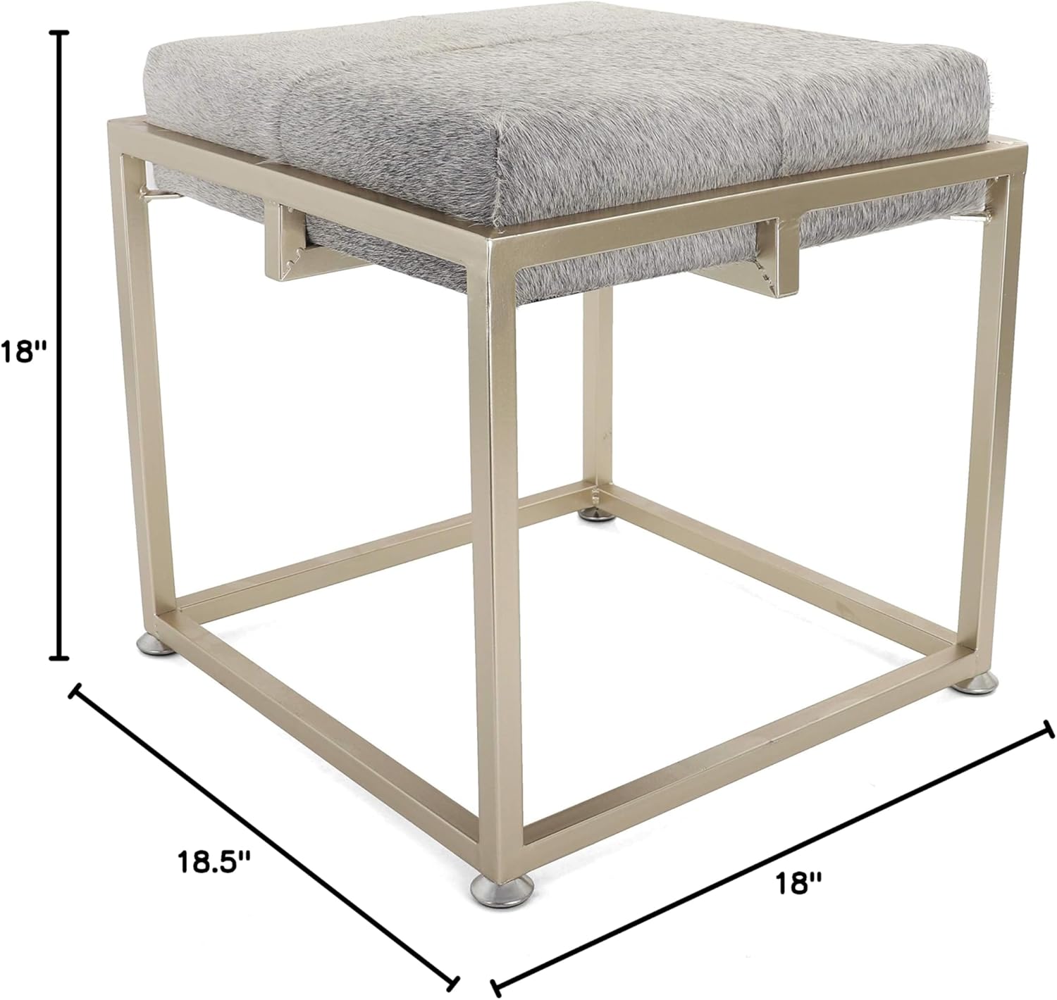 Rutledge & King Cowhide Ottoman/Vanity Stool - Square Ottoman Stool - White Ottoman/Grey Ottoman Foot Rest - Cowhide Grey & White Stool - Gold Stool - Cow Ottoman - Cow Fur Stool (Gold)