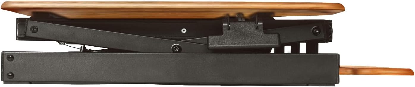 - QUICK, EASY AND STABLE HEIGHT ADJUSTMENT DESIGN: Sturdy metal frame with easy-grip side handle and gas piston assist, can raise and lower up to 40 pounds with continuous height adjustment from 5" up to 18" above desktop to optimize the ergonomic work position for people of most heights. Straight up and down motion minimizes required depth (23.25").