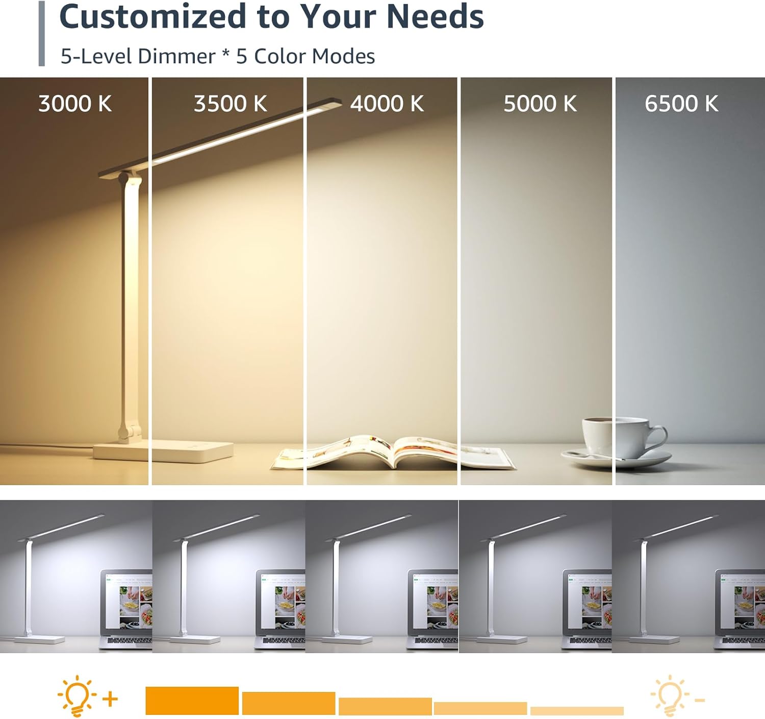 - [Multiple Lighting Choices] - This LED desktop lamp offers 5 lighting modes, each of which can be paired with one of 5 brightness levels, making it suitable for various needs, from bright white light for home office work to soft warm light for bedside reading.