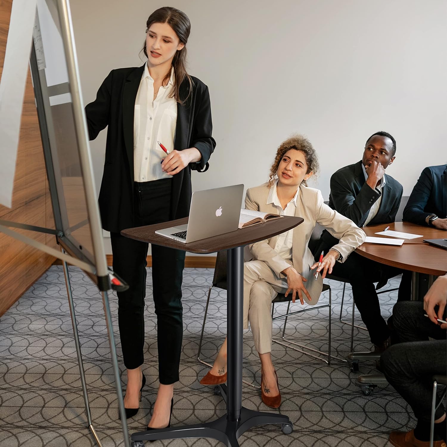 Pneumatic Adjustable Height Desk, Laptop Standing Desk, Rolling Sit-Stand Cart, Mobile Podium Portable Lectern for Home, Office& Classroom, 26" 19.3" Platform (29" to 46.9" H),Brown