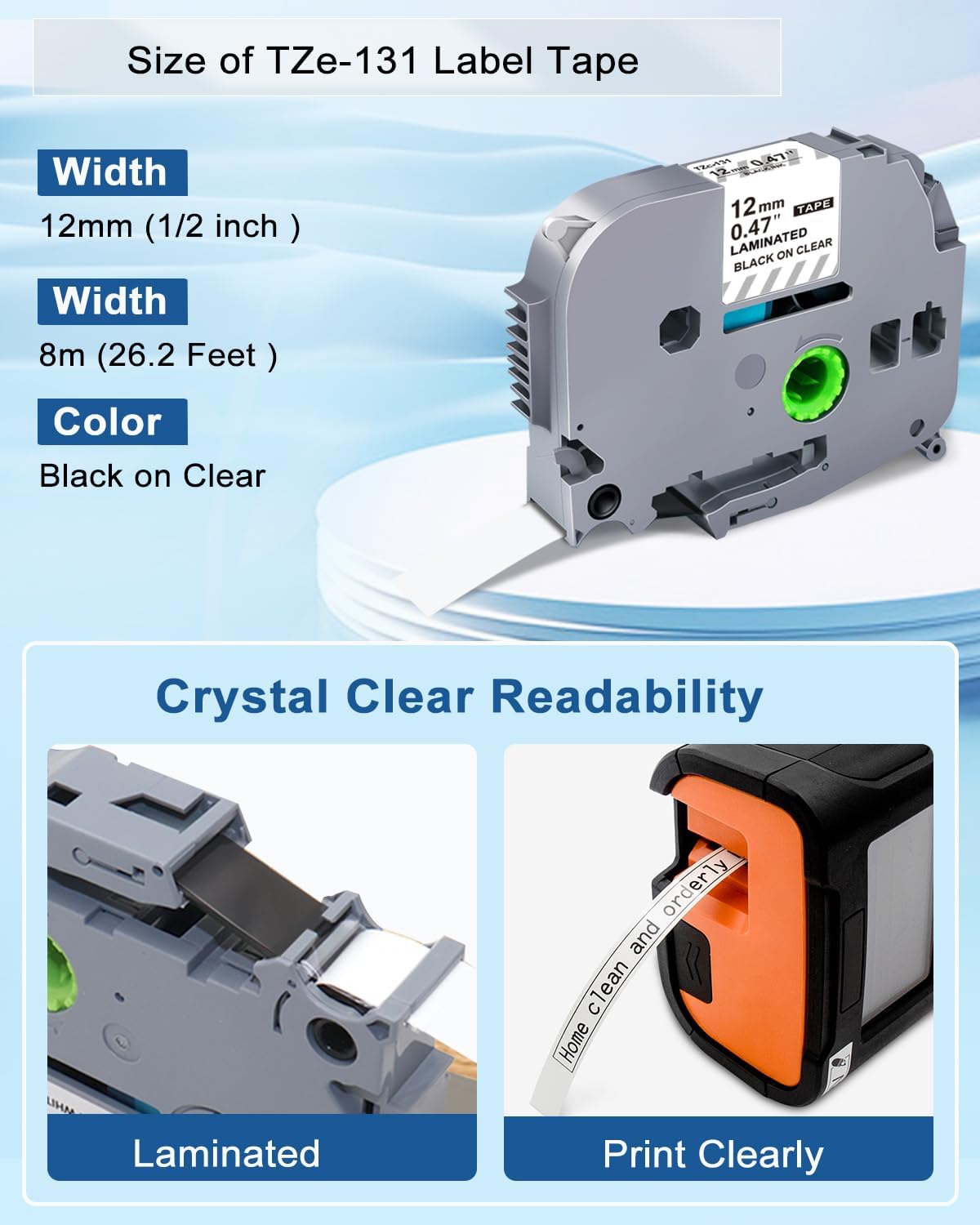 - Label Maker Tape Compatible with brother 12mm .47 laminated clear tz tape water resistant, abrasion resistant, temperature resistant, fade resistant; Replace for Brother clear label tape can be use for outdoors, and they work equally well indoors