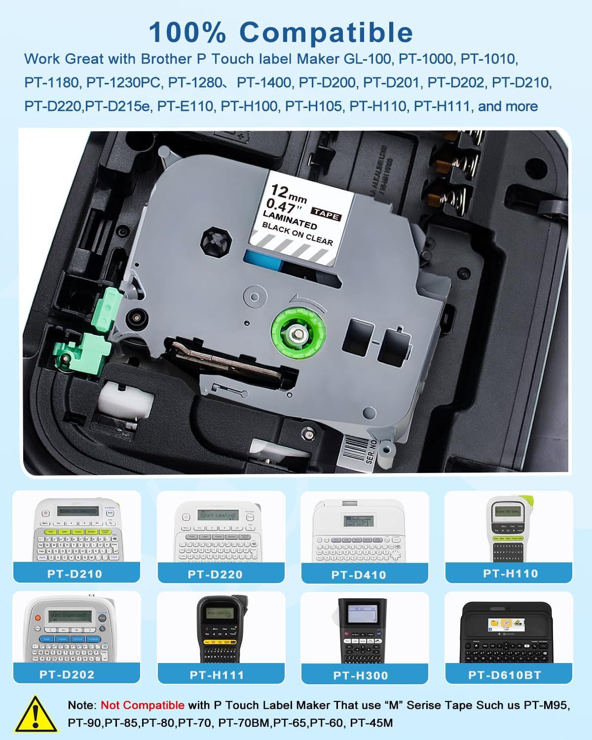 - TZe-131 12mm 0.47 Laminated Clear Tape Compatible with Brother P Touch Label Makers: PT-D210, PTD220, PT-H100, PTD400AD, PT-P700, PTD600, PT-1230PC, PT-1890C, PTD600VP, PT-P750W, PT2730VP, PTD450, PT-d400, PT-D200, PT1880C, PT-1880, PT-H500LI, PT2730, PT-1890w, PT-2430PC, PT9700PC, PT-2300, PT-1280SR, PT2030AD, PT-1090, PT-1290, PT-1880w, PT-9600 and more...