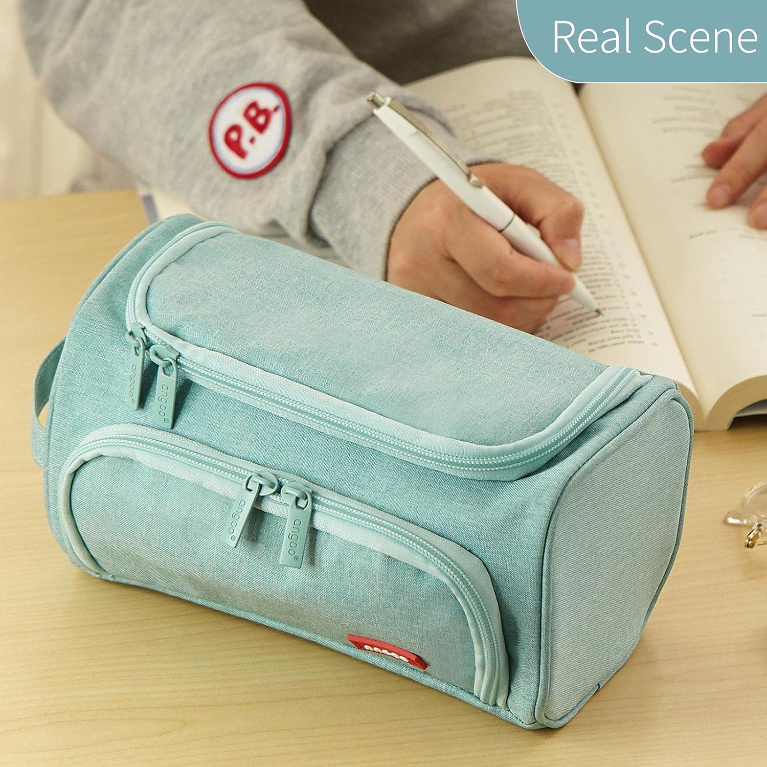 - 【Unique Design】Opens sideways (for easy-view and accessed) or from the top. Easy to carry, hand-held band. The Zipper grid pocket on top can storage triangle ruler, refills; big inner pocket can classify calculator,small pockets on both sides can keep small notes, sticky tape erasers; back zipper pocket can hold sharp objects.