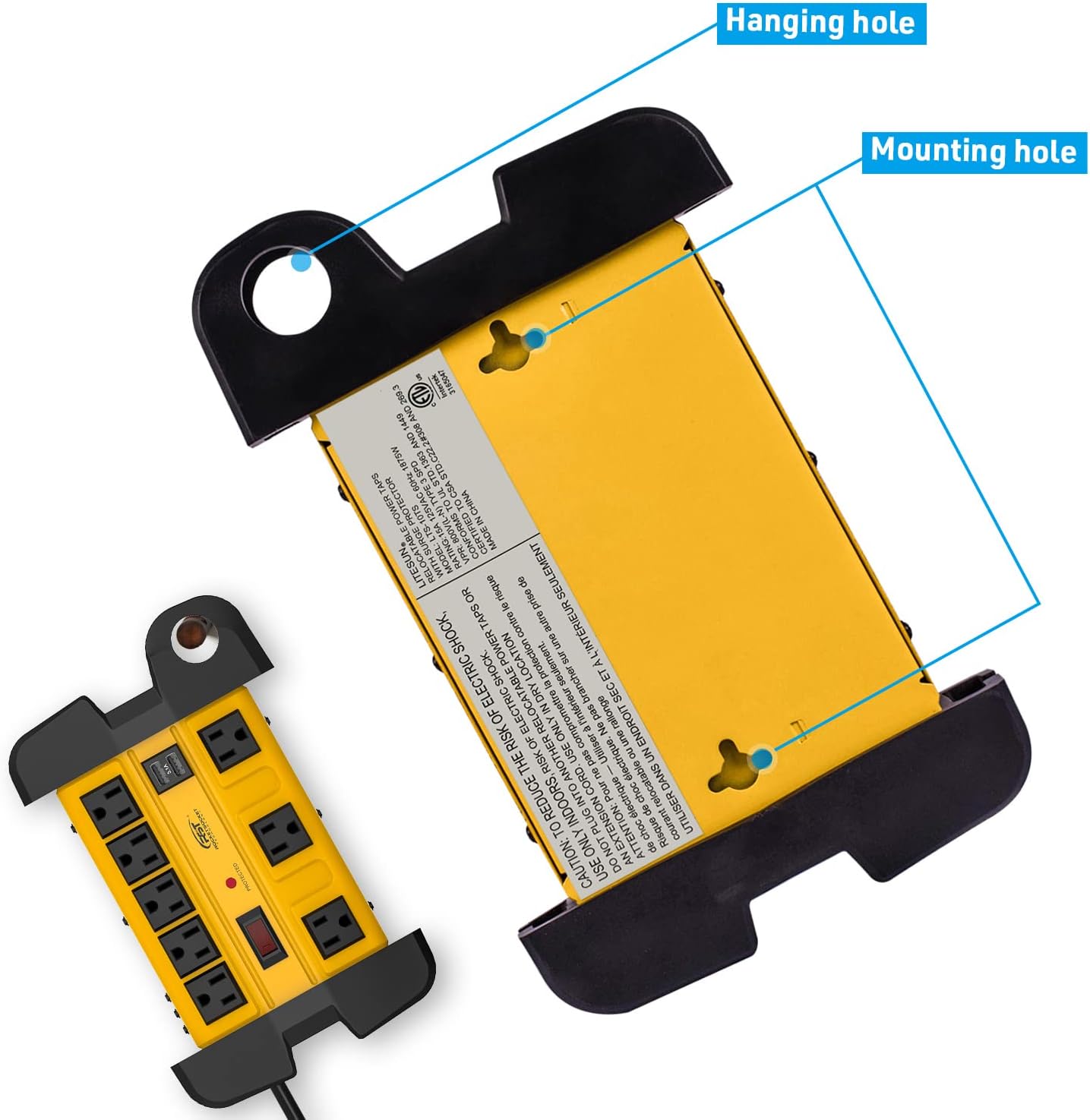 - [Cord management & Mountable]: Comes with hook and loop fastener and optimally designed cable winding slots, you can easily wrap the cable around the power strip, keyholes have been placed on the back of the power strip, enable the model to be placed on a wall, under a desk, and in other configurations to optimize space and keep power cords out of the way.