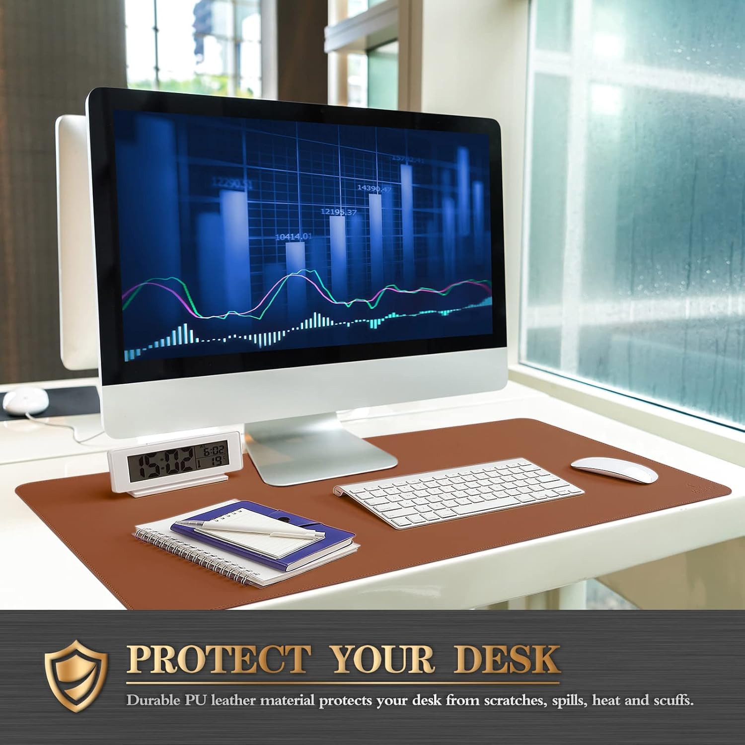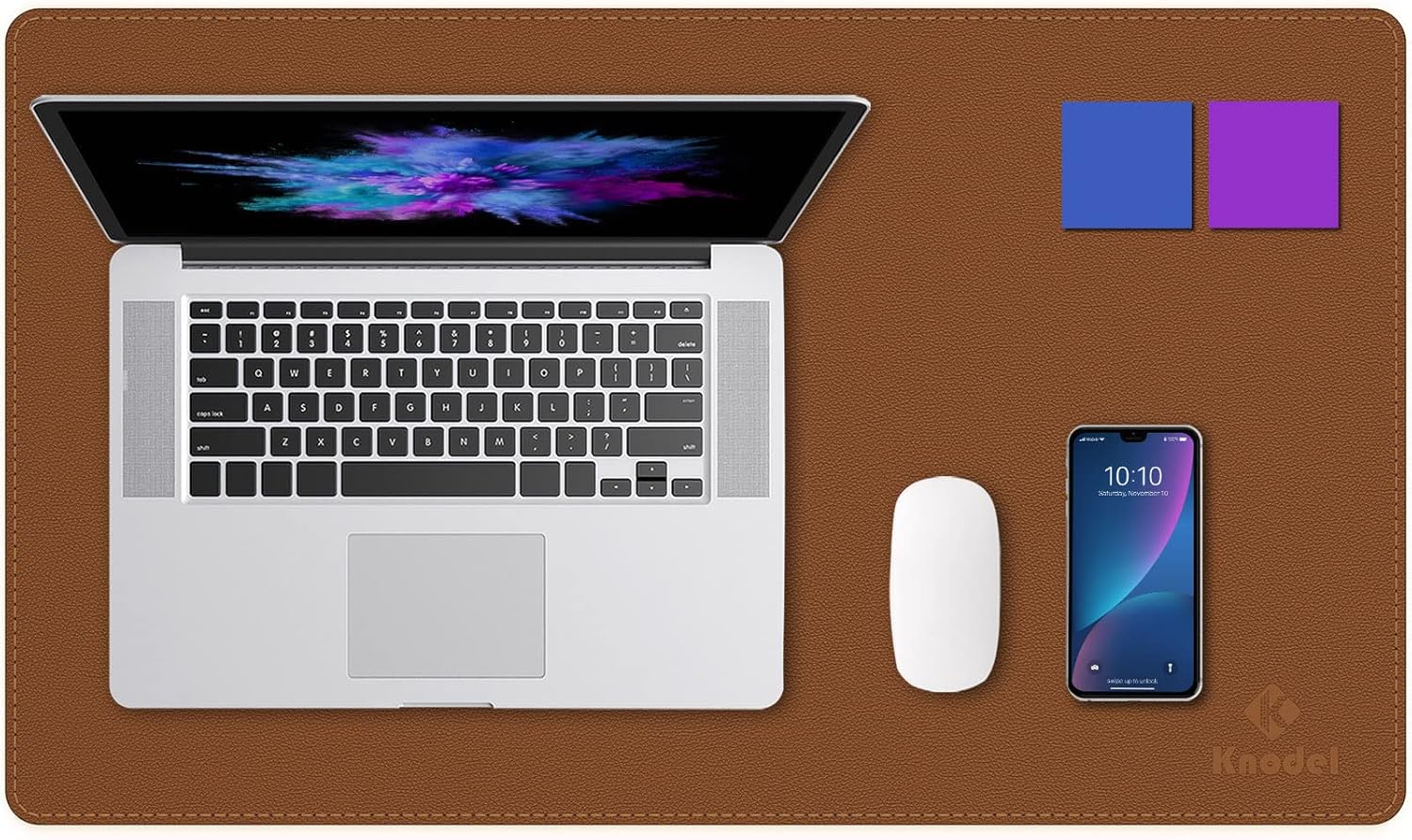 K KNODEL Desk Mat, Blotter, Dual-Sided Office Desk Pad, Waterproof Desk Mat for Desktop, Desk Blotters, PVC Leather Pad Protector (Brown, 23.6" x 13.8")