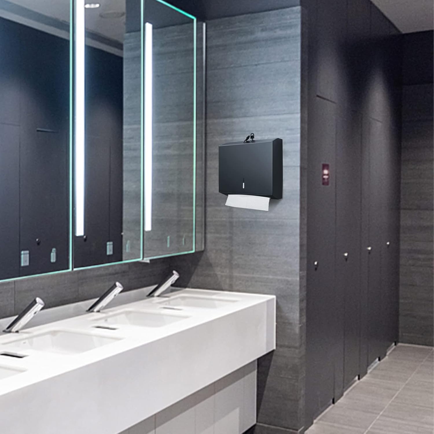 Paper Towel Dispenser Wall Mount Commercial, C Fold Multifold Hand Paper Towel Dispenser, Stainless Steel Tissue Holder (Matte Black)