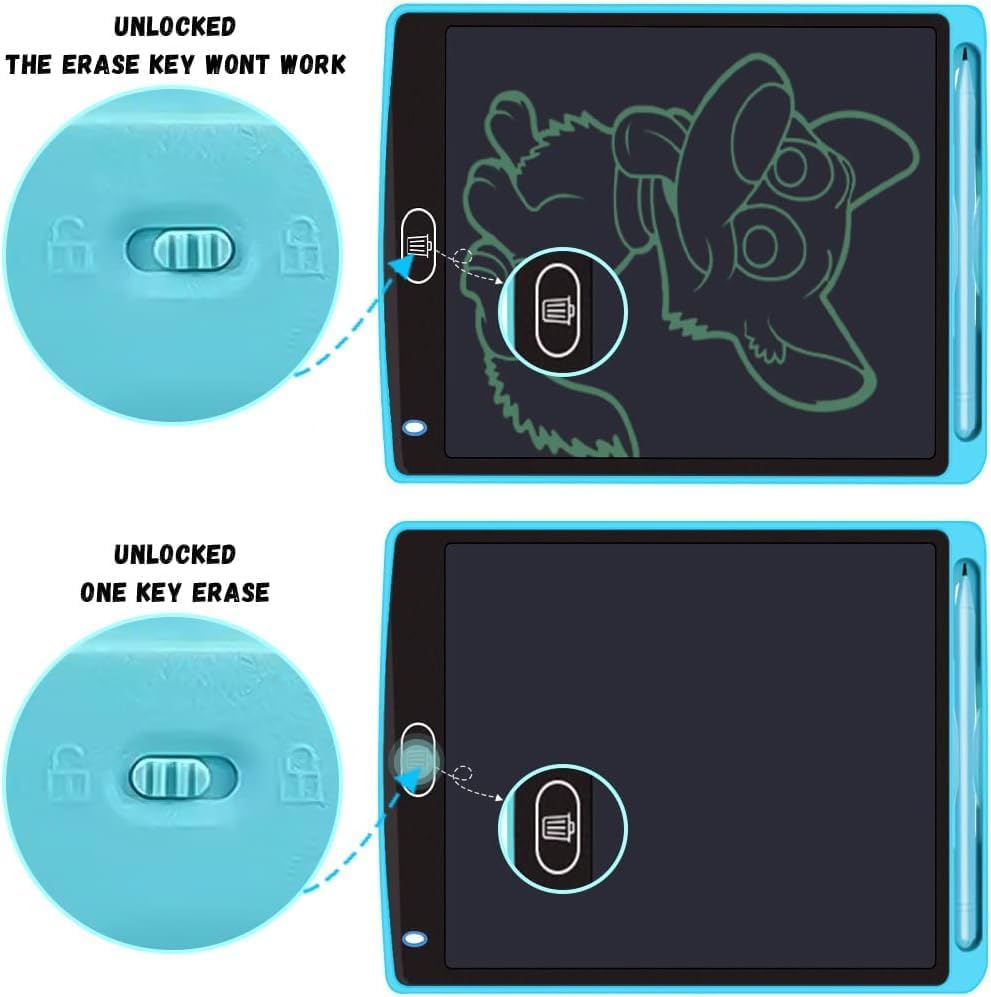 - 【Unique Design】:Toddler writing tablet is made of durable plastic, plus round corner design, anti-fall and anti-shock, no need to worry kids drop it. Kids drawing tablet design with a the lock/unlock button, click lock key of doodle board to save the content