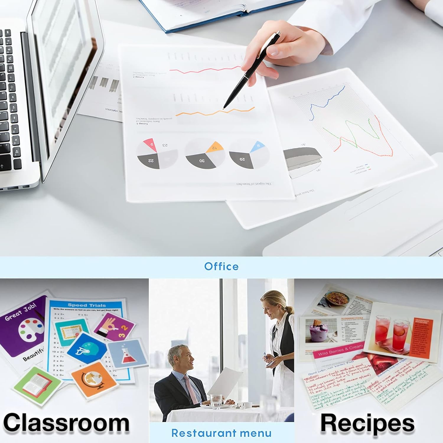 - Clear and durable. These laminate sheets can provide great protection for your photos, cardstock , paper, documents, child's art work, recipes, etc.