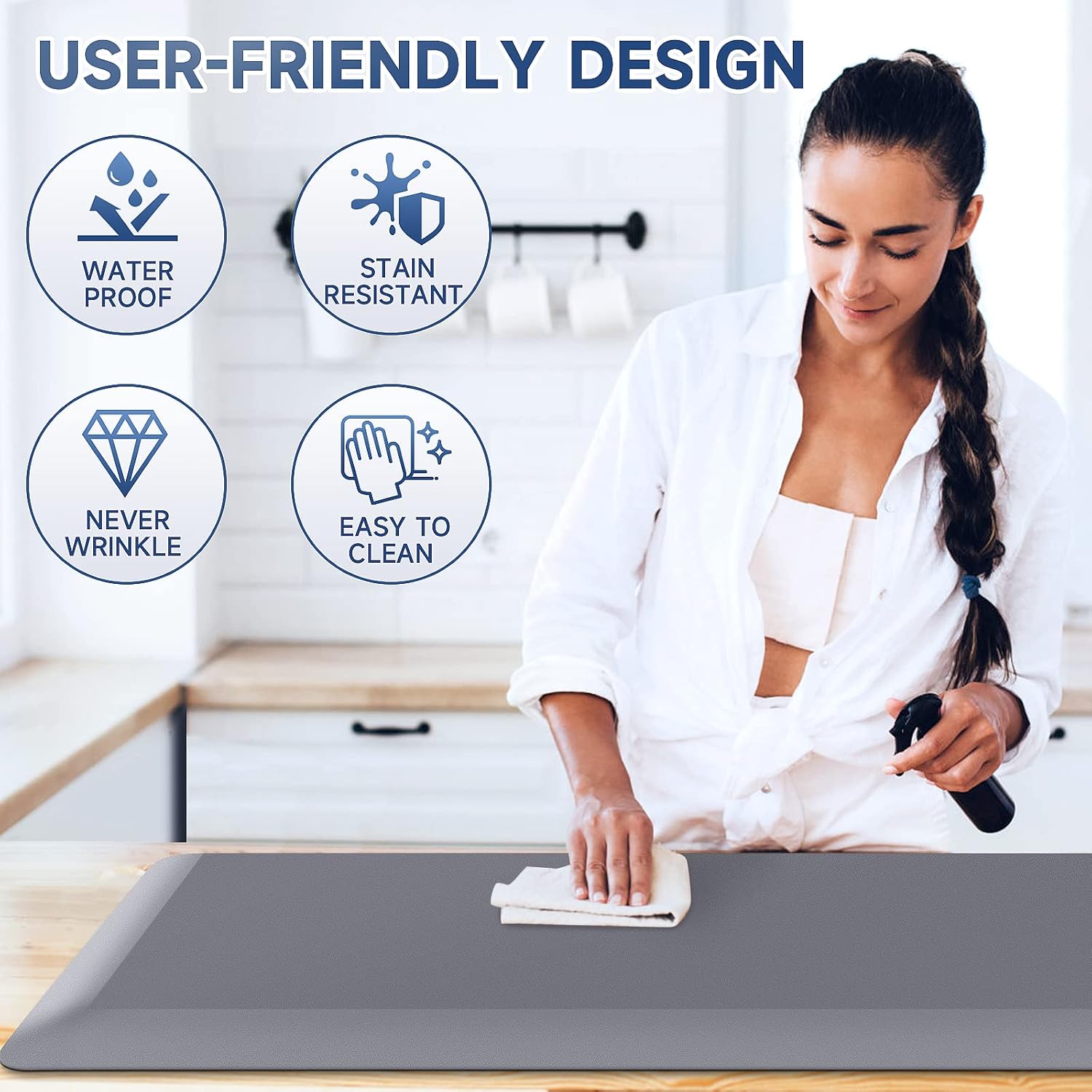 - 【EASY TO CLEAN】The surface is made of premium PVC material, which is water & stain resistant. Water, oil, sauce, or any kind of liquid can be simply wiped off with a damp cloth with no stain residue on the mat.