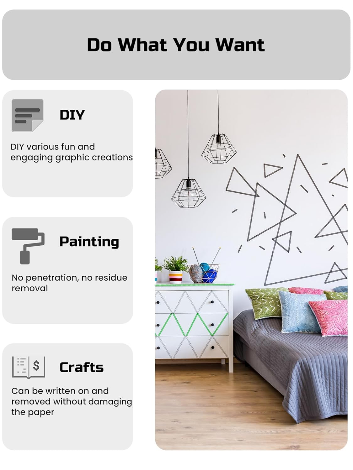 - Wide Applications: Painters tape can be used on almost all surfaces, without leaving any residue, thanks to its natural fiber construction. Great for wall painting, decorating, crafts, labeling and more DIY projects