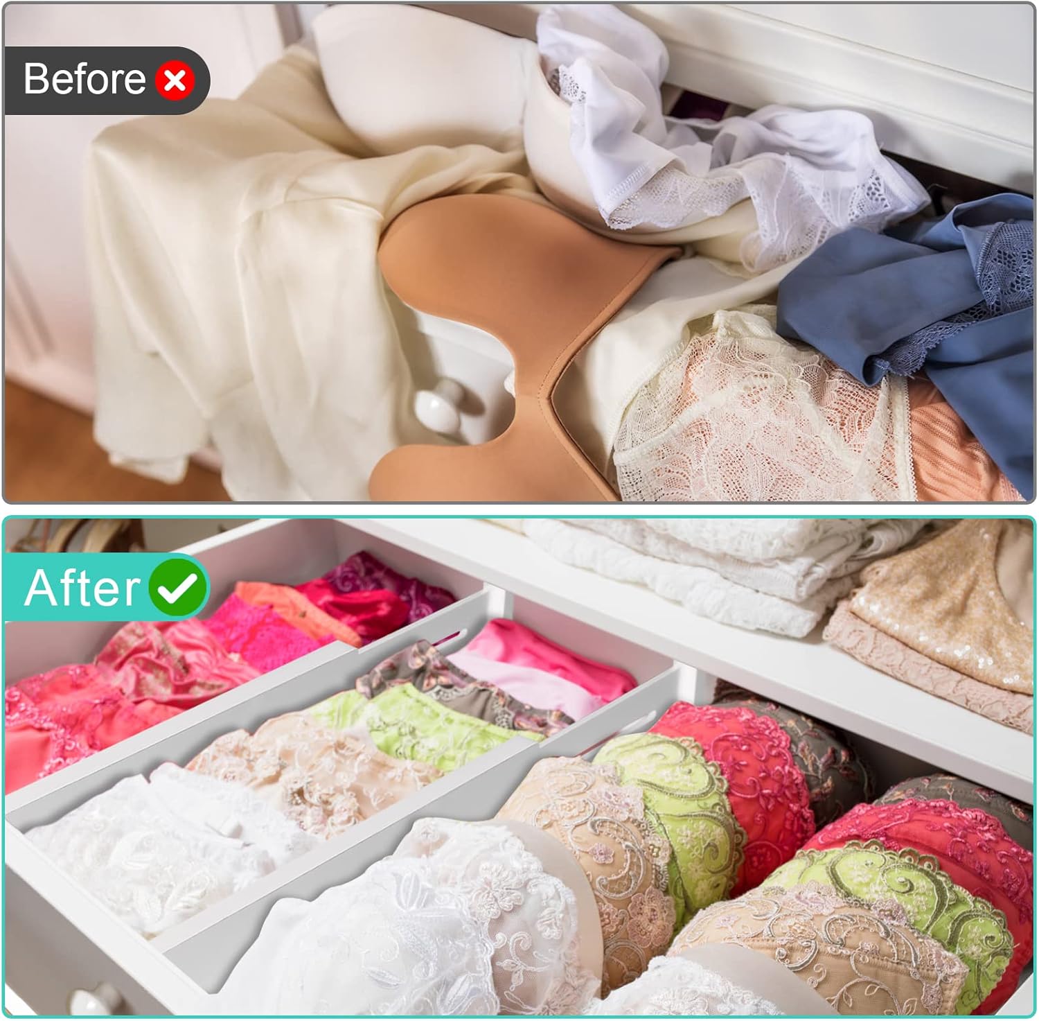 - If you've ever opened your kitchen drawers only to discover a mess of utensils, linens, and random knick-knacks, then you know the importance of getting multifunctional drawer dividers. Install in a matter of seconds, no tools required. Reduce the clutter hidden behind that closed drawer