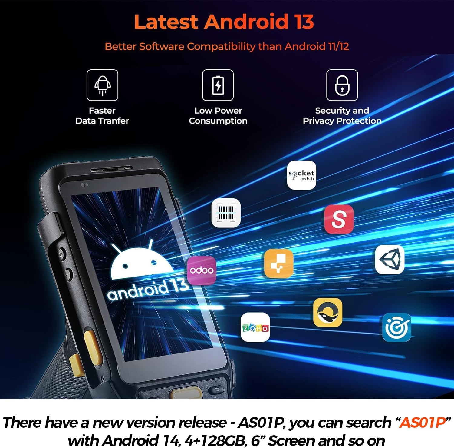 - [Enhanced with Android 13] MUNBYN IPDA088 PDA now boasts the latest Android 13, significantly enhancing privacy protection. Additionally, this Android scanner boasts broader software compatibility, easily integrating with popular inventory management software like inflow, Zoho, Sortly, Odoo, and Orcascan. And we could help you test your apps before you purchase in bulk.