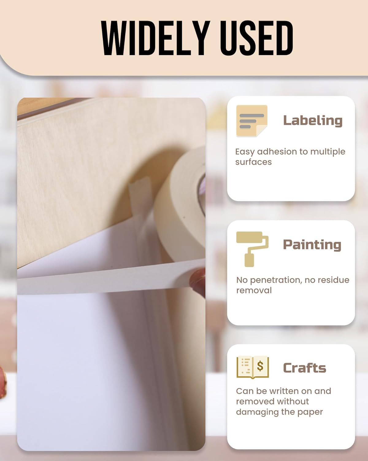 - EXCELLENT ADHESION: Designed for a wide variety of surfaces, this masking tape is ideal for light bundling, packaging, closing, and general duty masking and sealing across multiple applications
