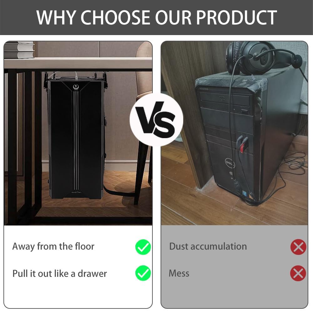 - Convenient Computer Access: This PC mount is designed with a unique sliding track (9.2 inches) that allows the PC tower to be accessed easily without removing it from the mount