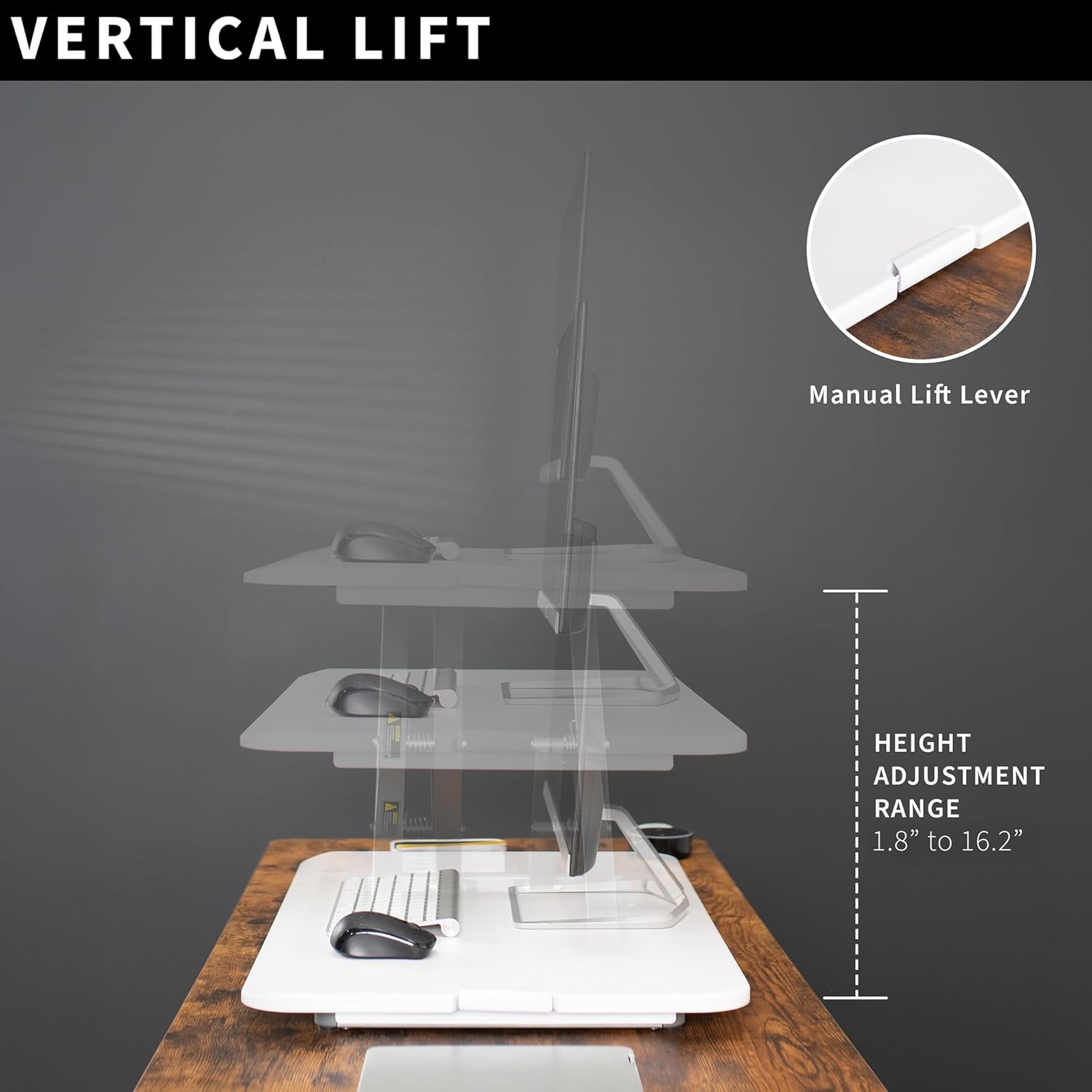 VIVO Economy Single Top Height Adjustable 29 inch Standing Desk Converter, Sit Stand Tabletop Monitor and Laptop Riser Platform Workstation, White, DESK-V000UW