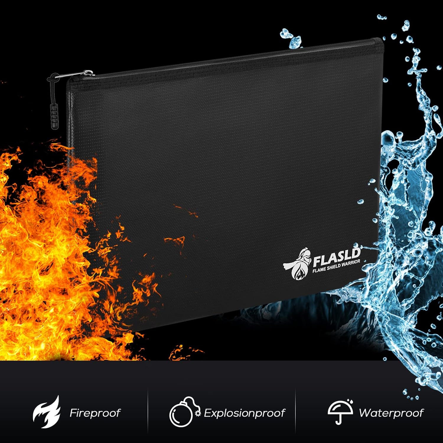 - FIREPROOF - FLASLD fireproof document bags are made of 4 layers high quality fire retardant materials silicone coated fiberglass fireproof safe bag which stands up against the fire and heat up to 4200℉.