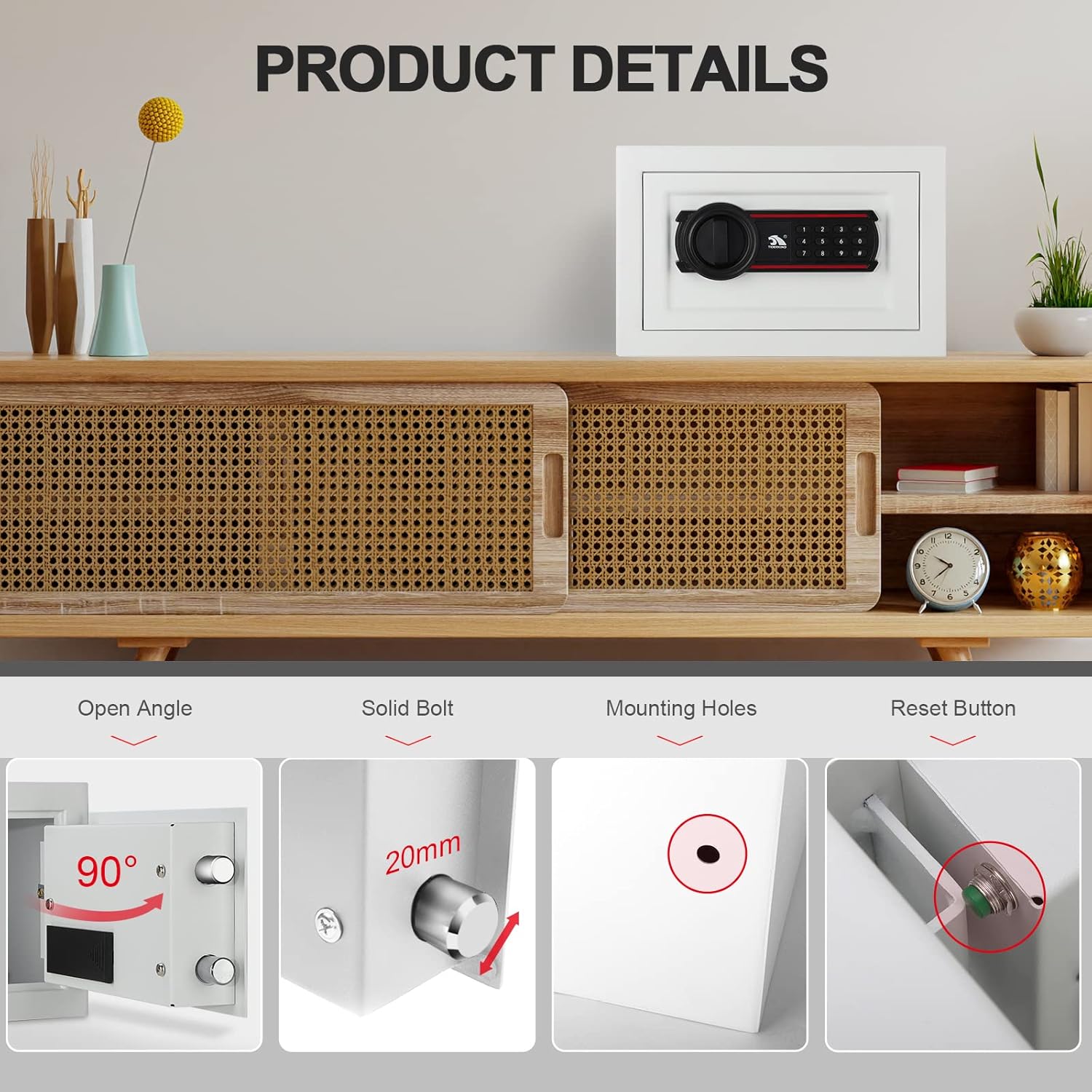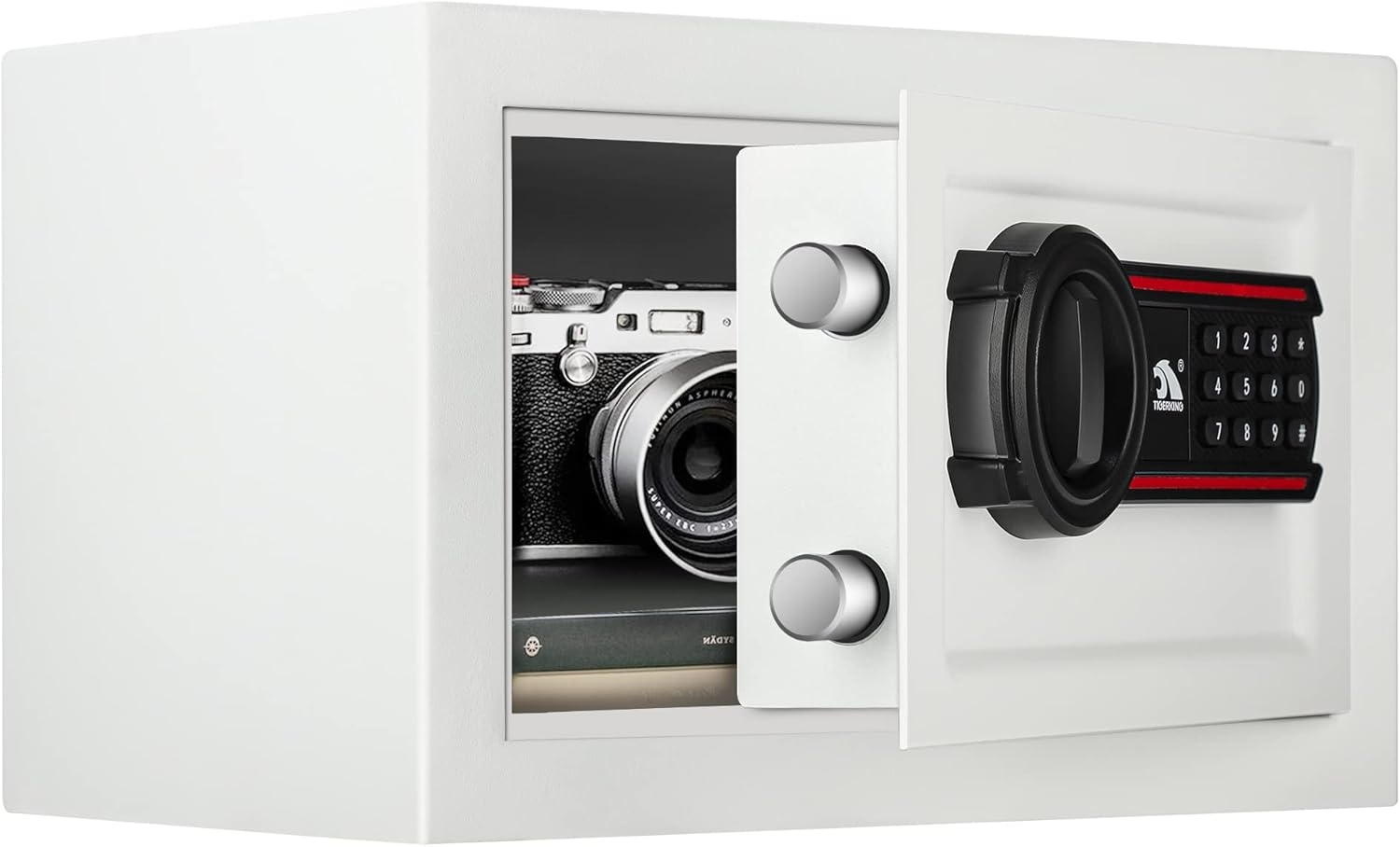 TIGERKING Digital Keypad Safe Box, 0.5 Cubic Feet Small Safe Money Safe Lock Box Cabinet Safes, Solid Alloy Steel Office Hotel Home Mini Safes for Cash Jewelry Documents(White)