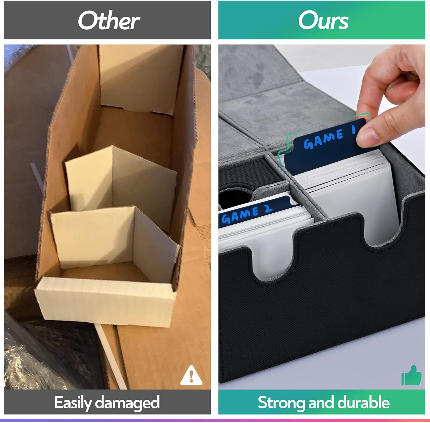 - Easy to sort: These card dividers that can be used both horizontally and vertically can better help you store and organize your cards. This trading card divider has a label section where you can write notes on these cards, allowing you to find the cards you want more quickly