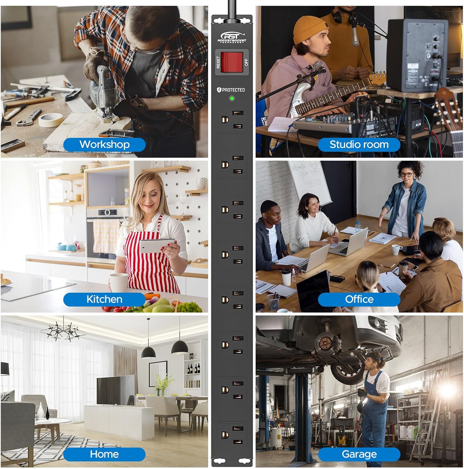 - [Versatility] - Makes it an ideal choice for a wide range of settings, including homes, garages, school, office and workshops. Whether you're working on a DIY project in your garage, or running power tools and machinery in your workshop, this metal power strip can handle it all.