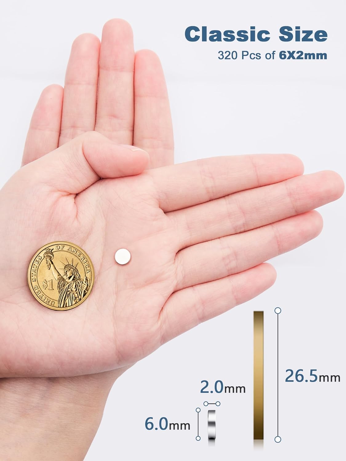 SMARTAKE 320 Pcs Refrigerator Magnets, 6x2mm Small Round Fridge Magnet, Multi-Use Premium Neodymium Office Magnets for Fridge, Whiteboard, Billboard in Home, Kitchen, Office and School (Silver)