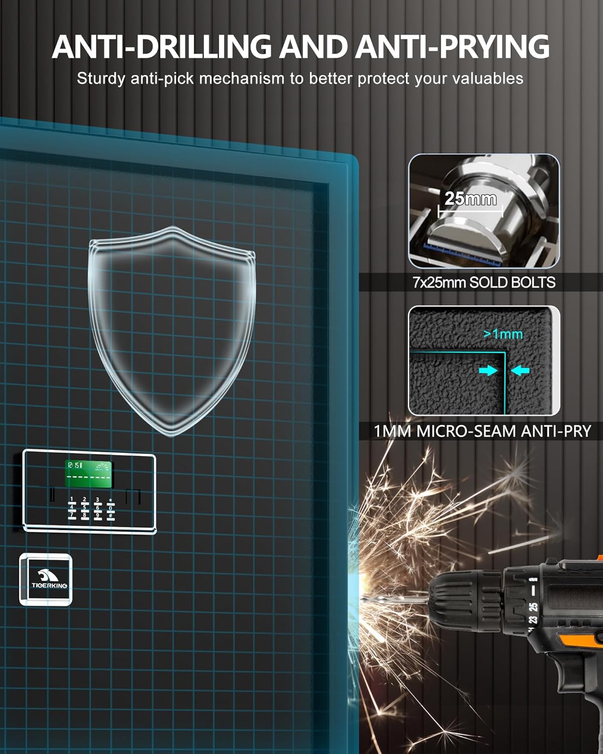 - ✅【DOUBLE SAFETY KEY LOCK】:Tigerking safe has dual safety key unlocking function, dual key unlocking increases security. There are 2 unlocking methods: 1. Dual key unlocking; 2. Master key + password unlocking, NOTE:The master key is always need to open the safe , with this design, even some one get your code, without the master key , they still can not access to the safe.