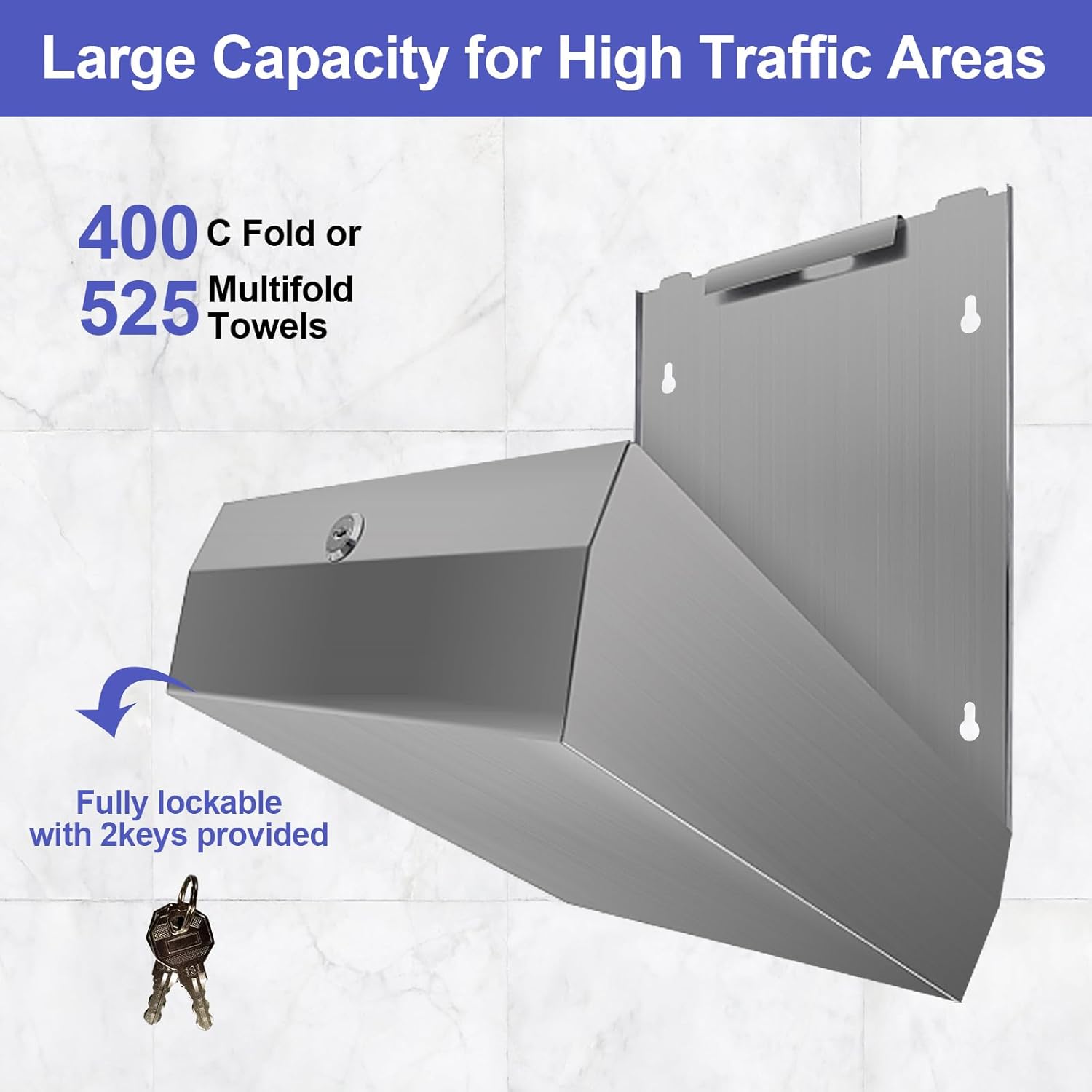 Paper Towel Dispenser Wall Mount, Brushed Stainless Steel Commercial Paper Towel Holder with Lock, Large Capacity 400 C Fold/525 Multifold Towels